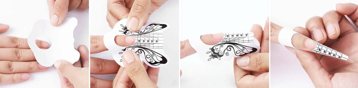 Szablony maja odpowiednią sztywność, która ułatwia podłożenie szablonu do wolnego brzegu naturalnego paznokcia. Klej nie rozkleja się pod wpływem ciepła w lampie, dodatkowo jest całkowicie bezpieczny.