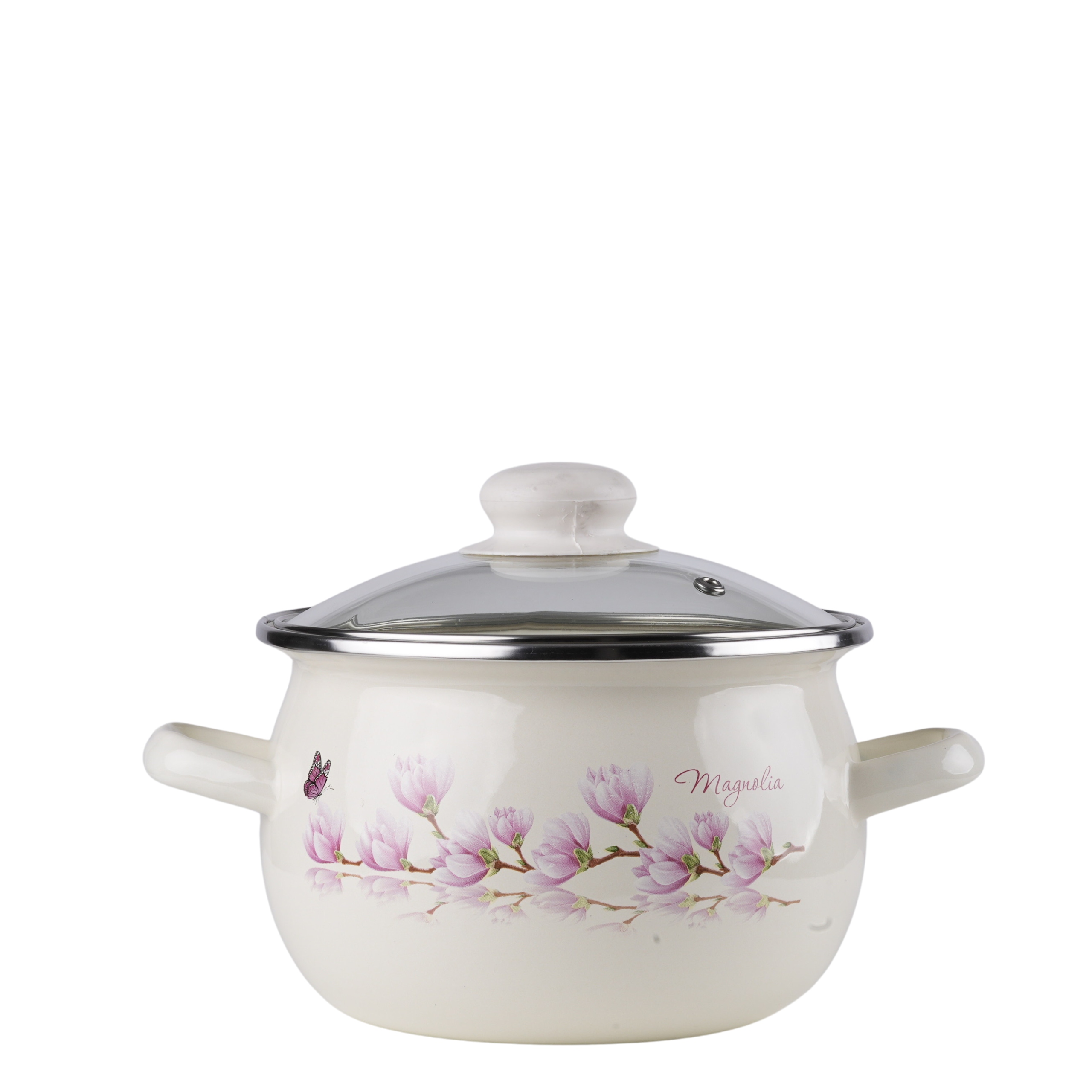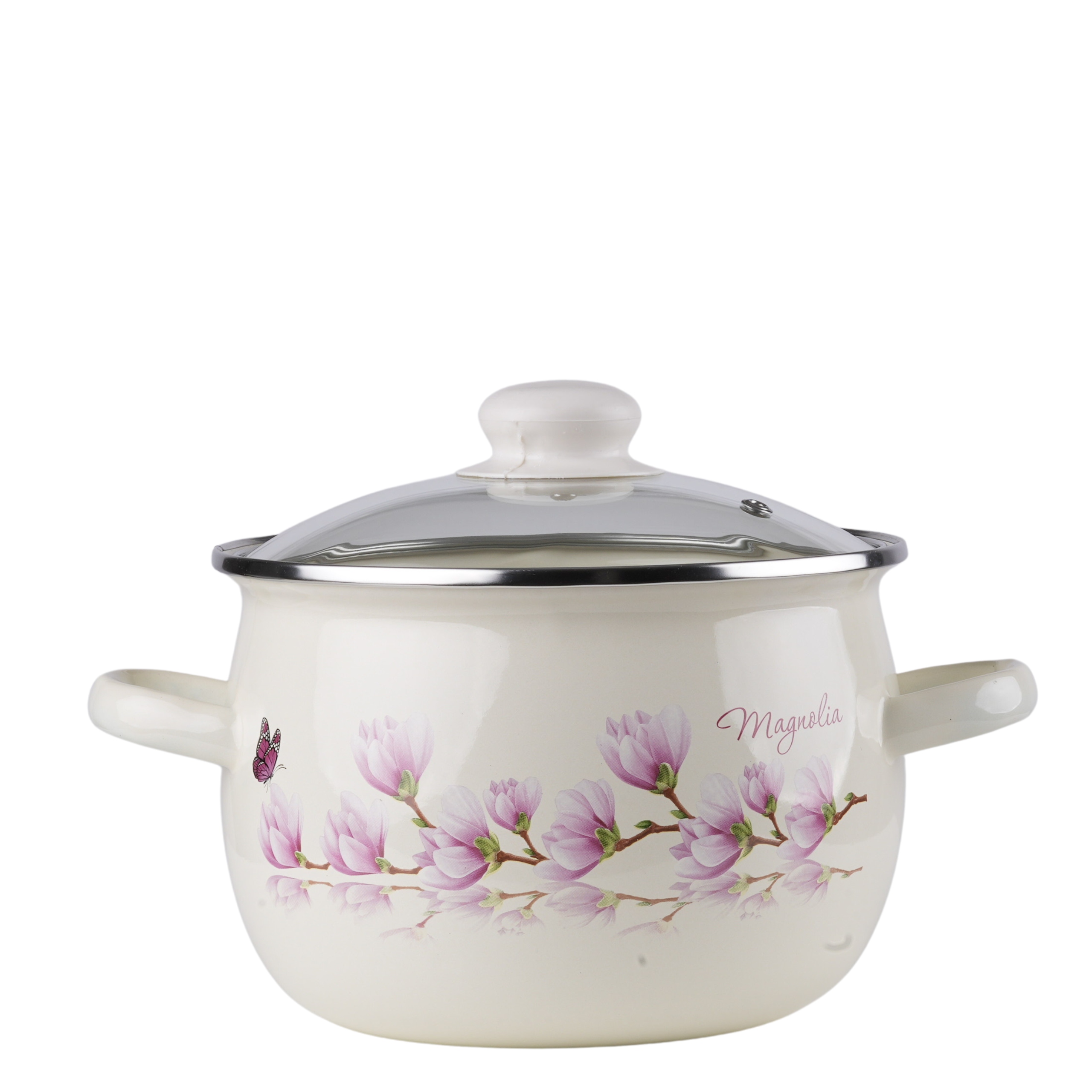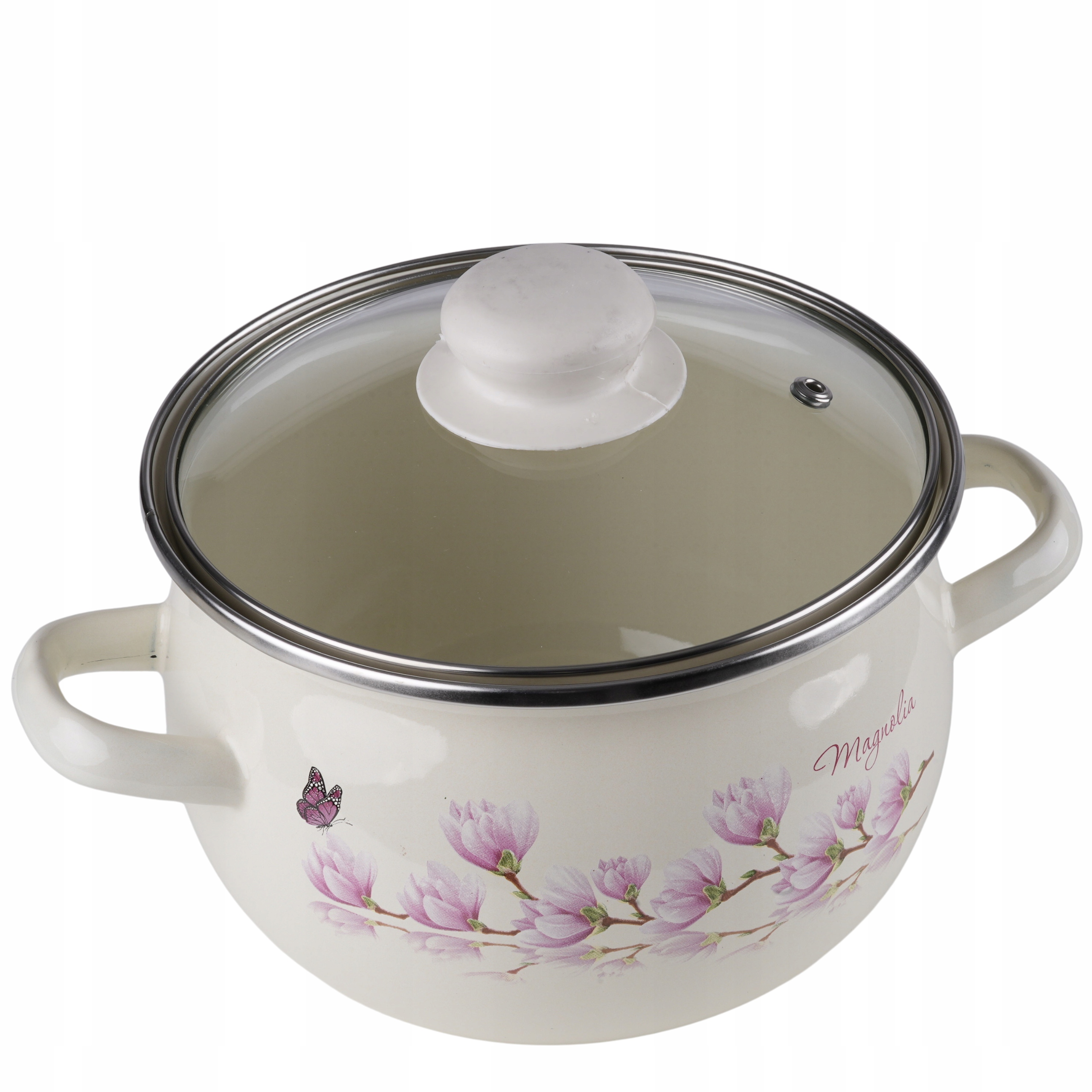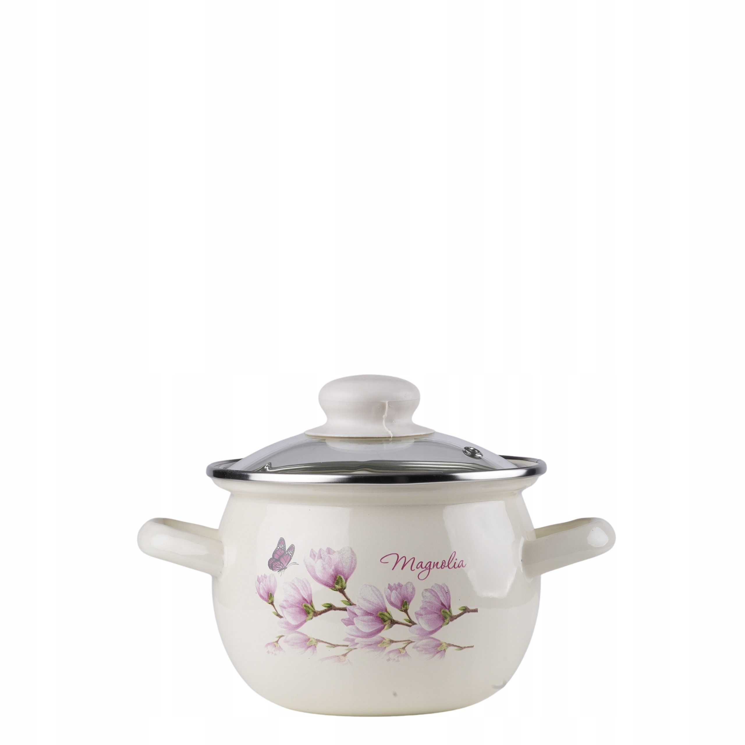 ✅ komplet garnków MAGNOLIA to połączenie baryłkowatego kształtu z uwielbianą przez wielu emalią. W jego skład wchodzą 4 garnki o różnych pojemnościach, każdy z dopasowaną do niego szklaną pokrywą