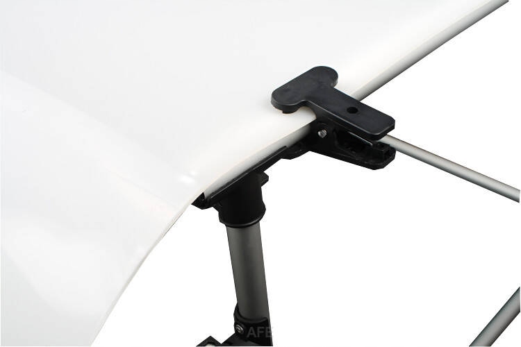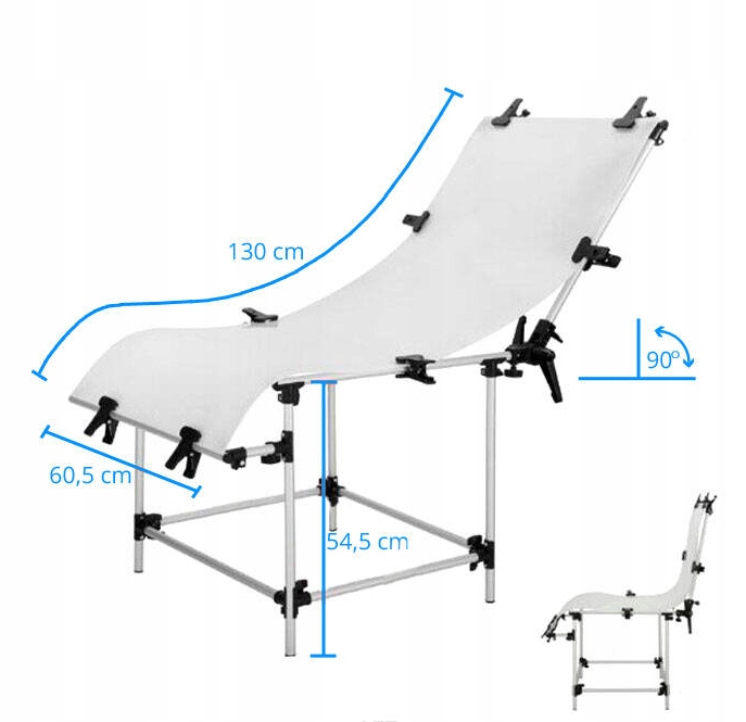 Stół bezcieniowy stanowi niezbędne wyposażenie każdego studia fotograficznego. Dzięki swojej solidnej konstrukcji jest bardzo stabilny, a przy tym łatwy w użytkowaniu. Montaż nie wymaga kluczy, jest bardzo prosty. Pleksi mocowana jest do stołu za pomocą solidnych zacisków. Kąt nachylenia jest regulowany, co czyni stół wyjątkowo uniwersalnym. Elementy stołu po złożeniu można przechowywać i transportować w dołączonym pokrowcu.