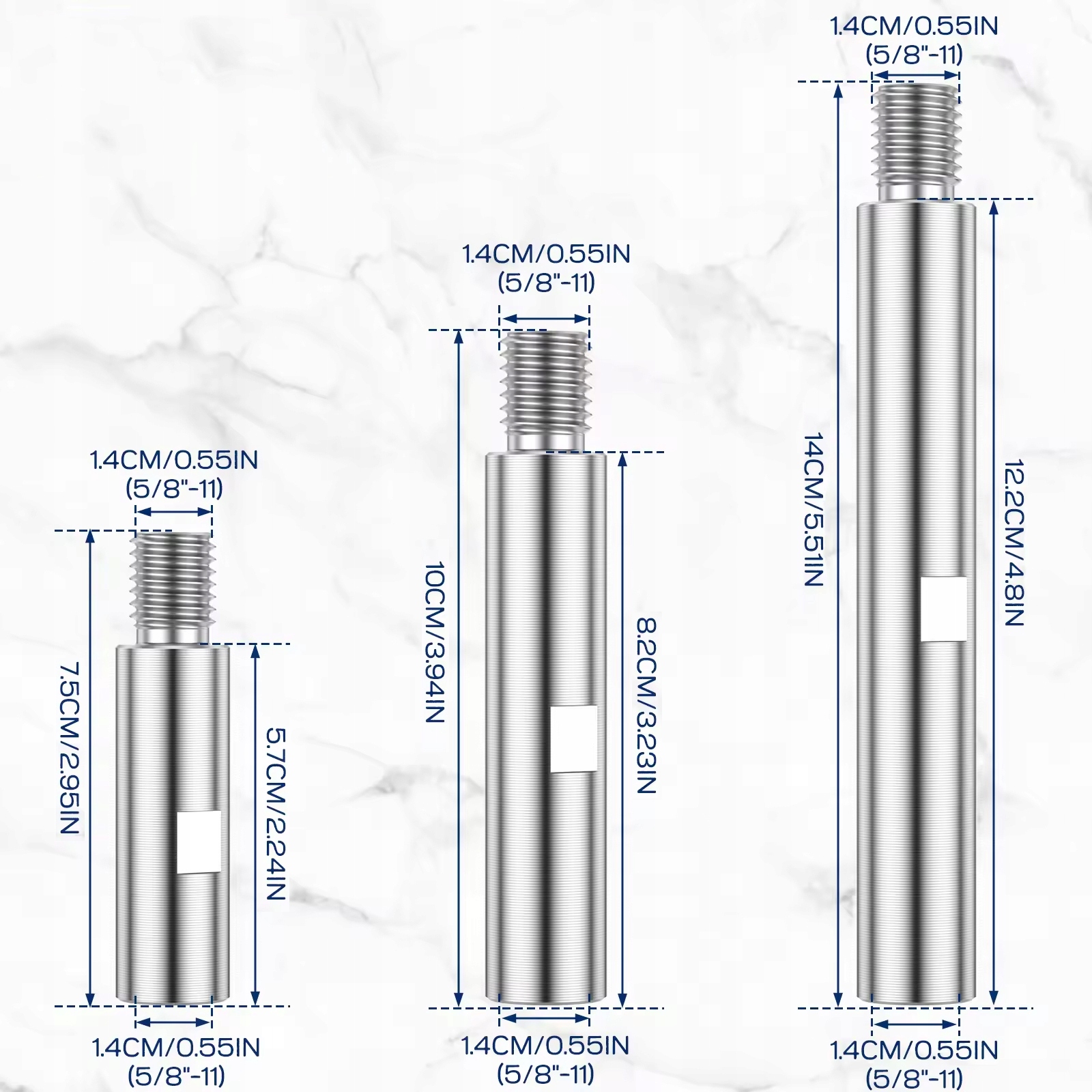 Ten 3 zestaw zawiera 75 mm, 100 mm i 140 mm, które można również łączyć ze sobą w celu uzyskania unikalnych długości zgodnie z wymaganiami.