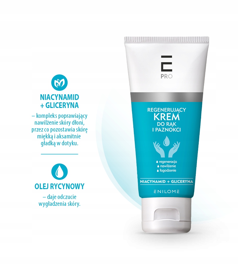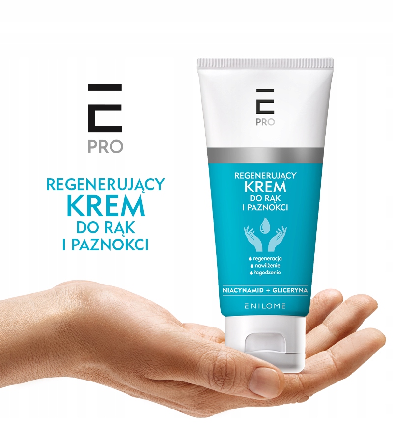 Enilome Pro regenerujący krem do rąk i paznokci to dermokosmetyk, który intensywnie regeneruje i odżywia skórę dłoni, jednocześnie wzmacniając paznokcie. Dzięki bogatej formule skutecznie nawilża, redukuje szorstkość i chroni przed działaniem czynników zewnętrznych. Regularne stosowanie sprawia, że dłonie stają się miękkie, gładkie i zadbane, a paznokcie mniej łamliwe i bardziej odporne.