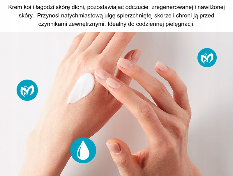 Niewielką ilość kremu wmasuj w skórę dłoni i paznokcie aż do całkowitego wchłonięcia. Stosuj codziennie, szczególnie po myciu rąk.