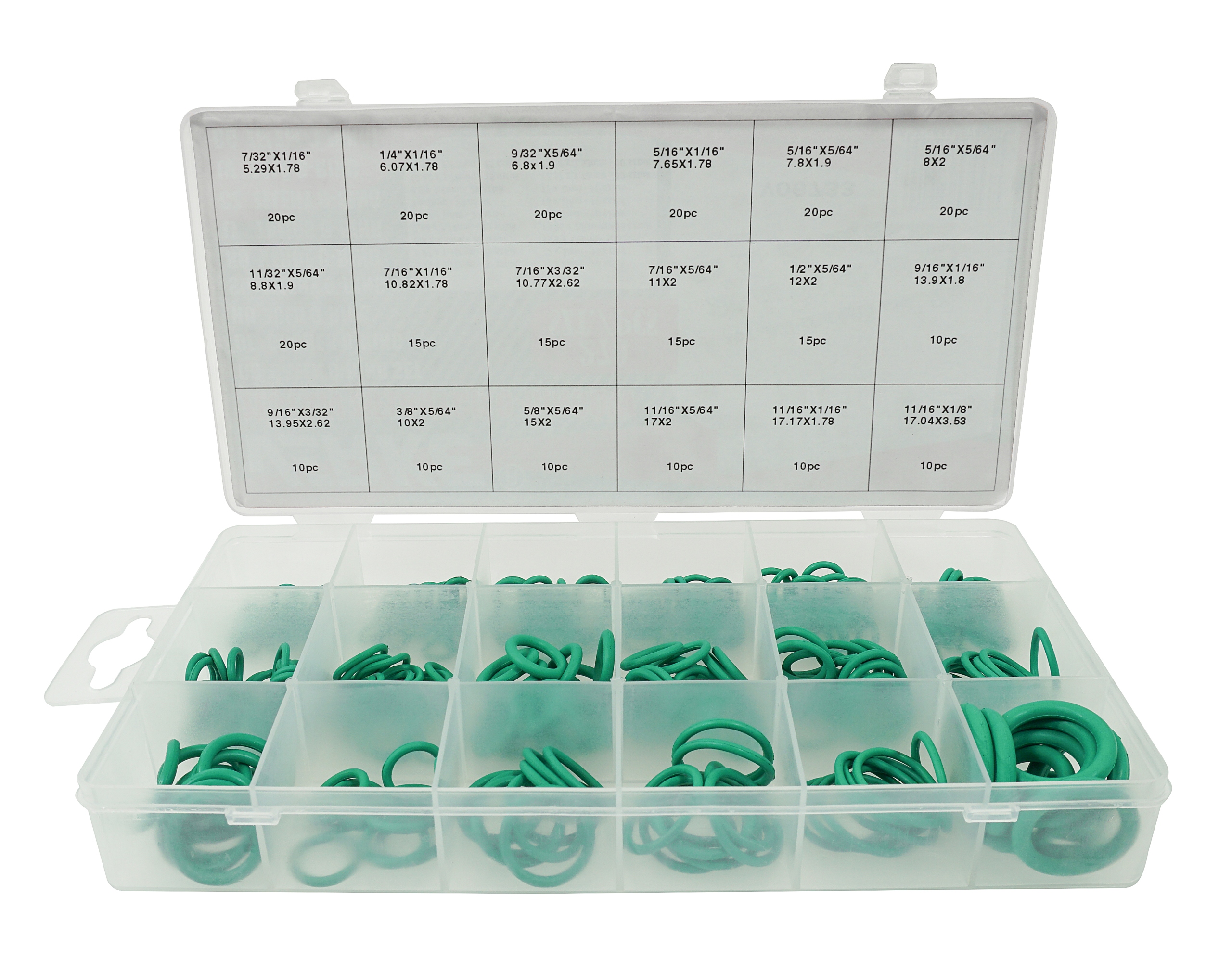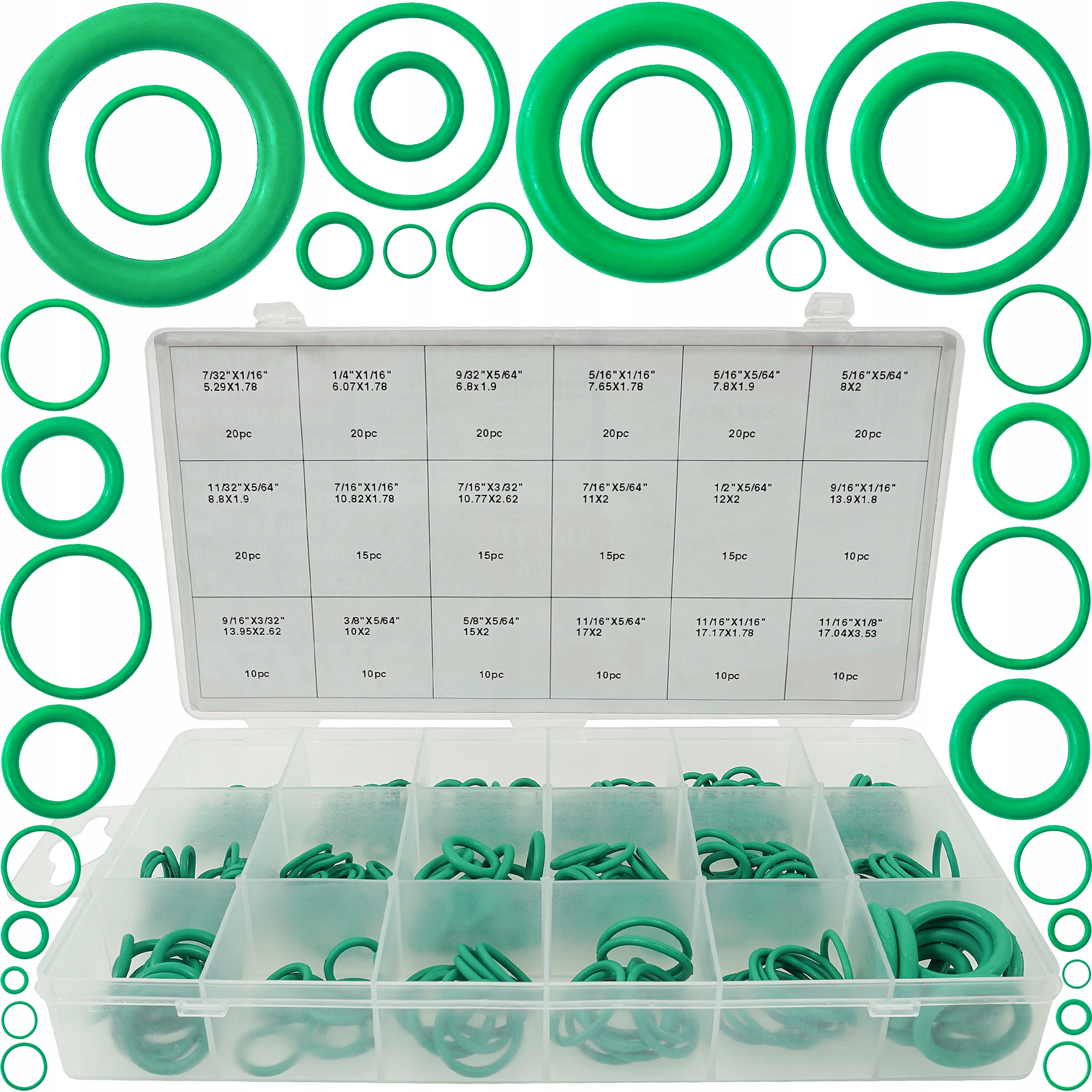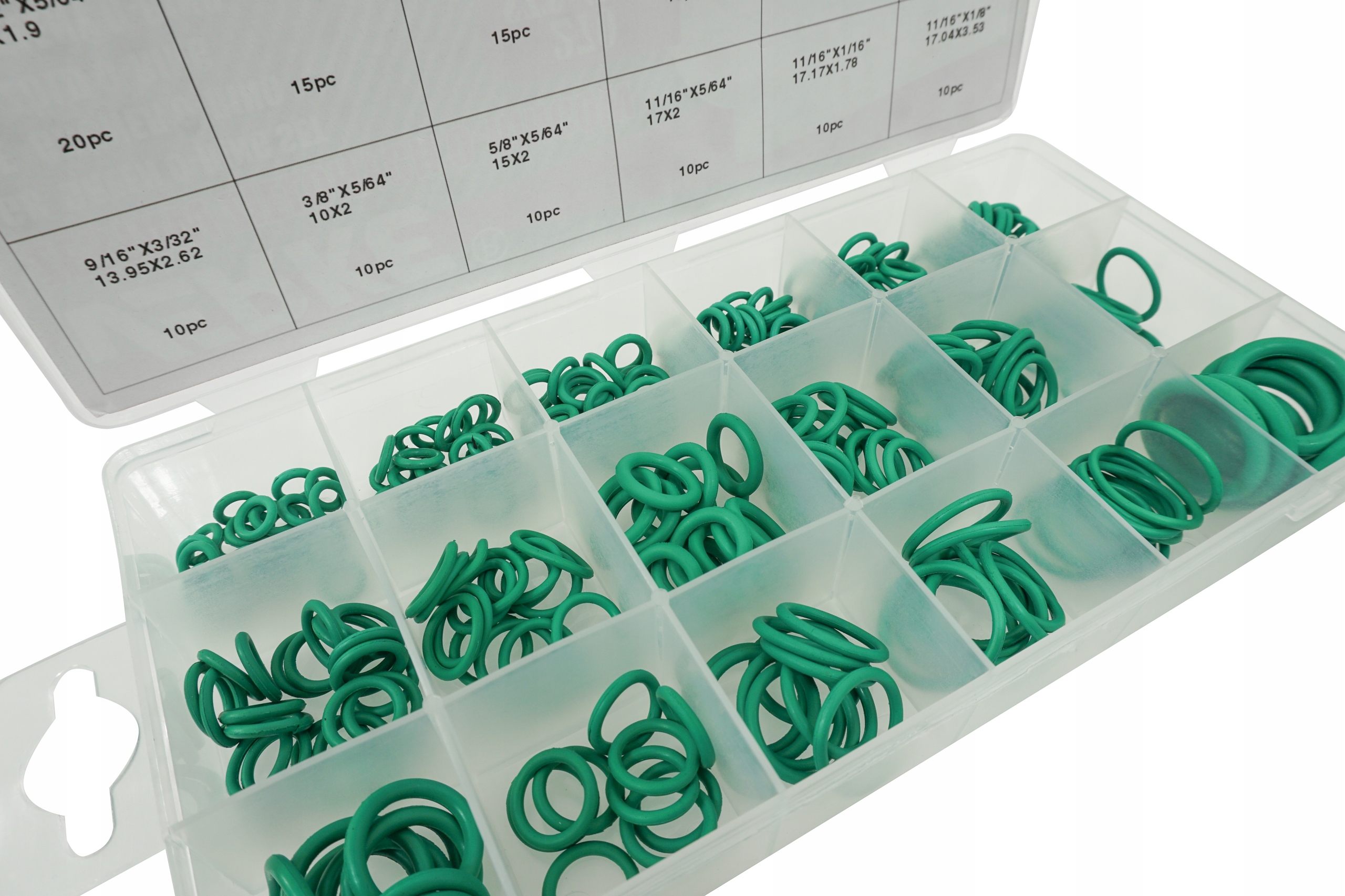 Praktyczny zestaw 270 O-ringów zawiera mix rozmiarów. O-ringi wykonane zostały z kauczuku HNBR. Praktyczne opakowanie pozwala na łatwy dostęp do dogodnego rozmiaru.