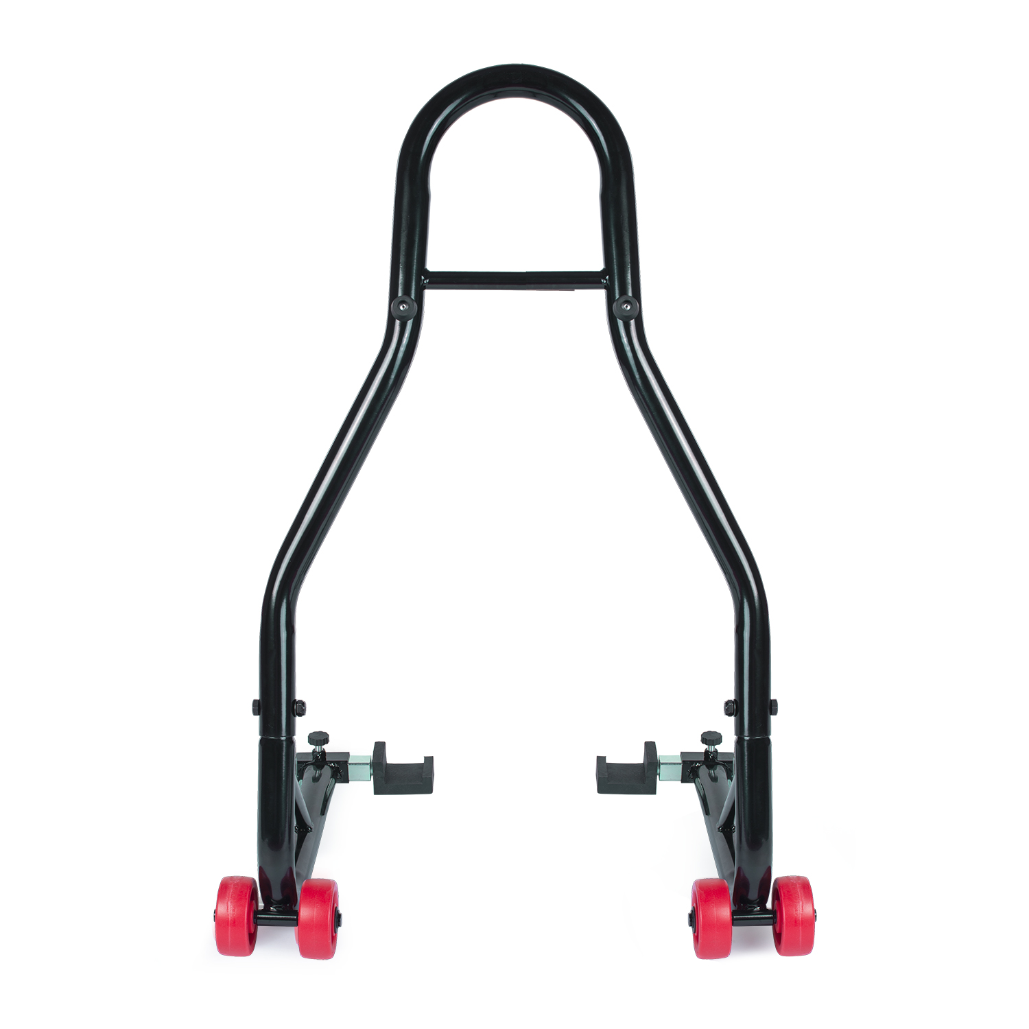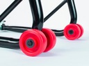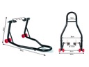 Podnośnik wykonany został z materiałów najwyższej jakości. Do produkcji wykorzystano stalową rurę o średnicy 32 mm malowaną proszkowo. Możliwość regulacji pod indywidualną szerokość motocykla.Wszystkie części są zabezpieczone przed korozją poprzez malowanie proszkowe bądź ocynkowanie. Kółka wykonane zostały z wysokiej jakości kompozytu.