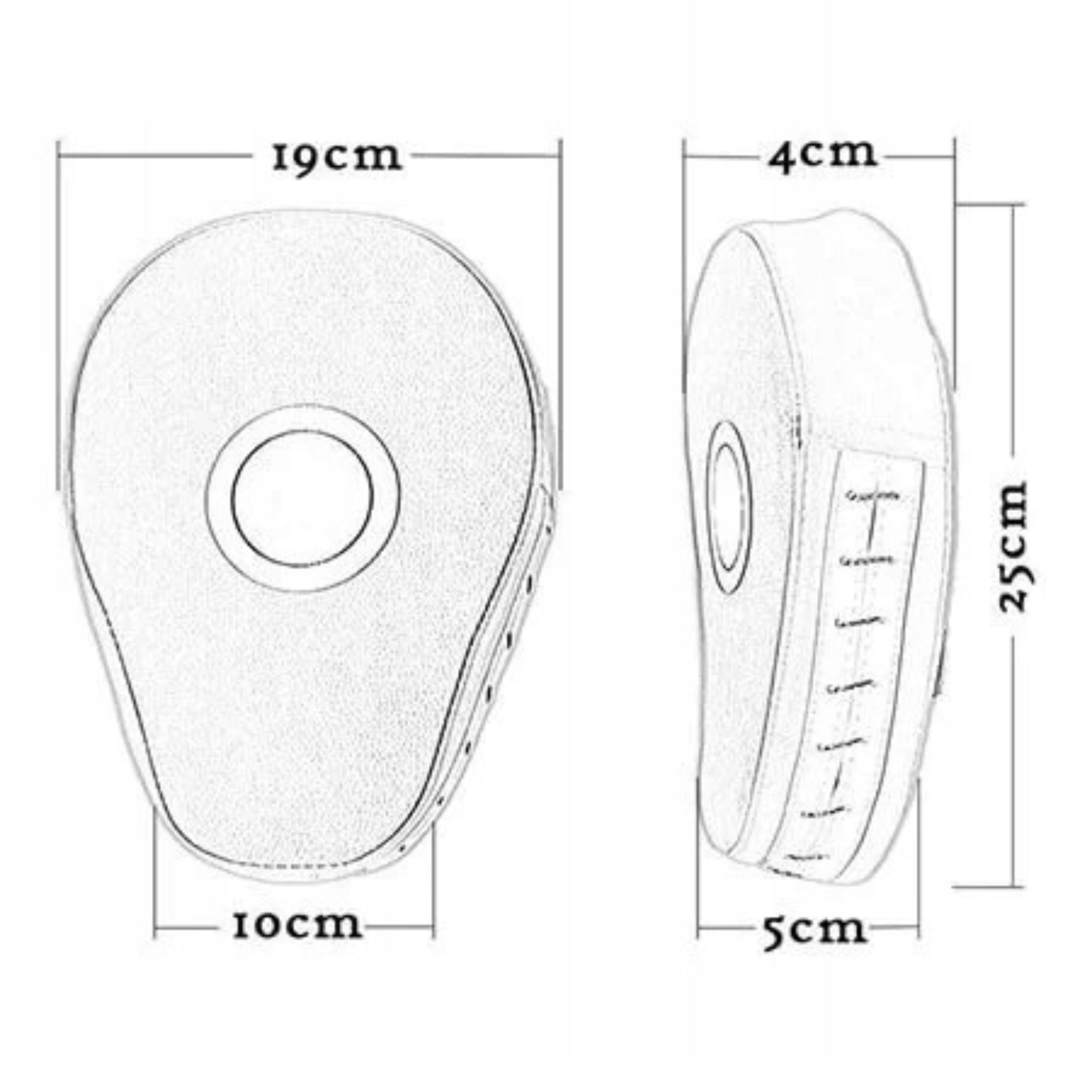 Wykonane z jakościowej skóry syntetycznej. Model ten został specjalnie wyprofilowany co skutecznie ogranicza możliwość ześlizgnięcia się ciosu. Poprawia to celność zawodnika i bezpieczeństwo trenera podczas prowadzonego treningu.