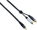 Uniwersalny audio kabel przełączeniowy, wykonany z odolnego, lecz miękkiego i fleksybilnego PVC materiału. Wyposażony 1x 3,5 mm Jack TRS złączem na jednej stronie i 2x RCA złączami na drugiej stronie. Dysponuje pozłaconym Jack złączem. Długość kabla 5 m, kolor czarny.
