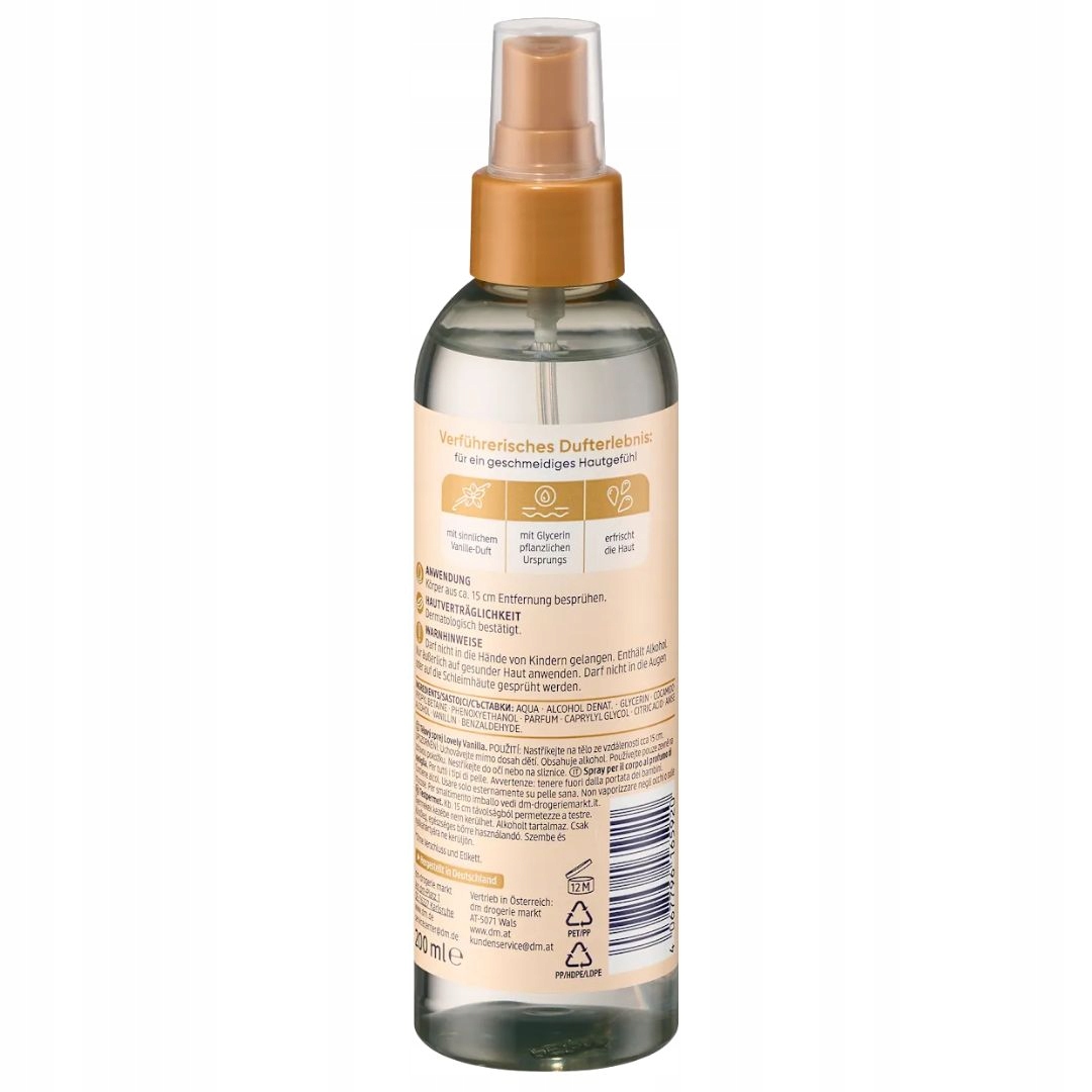 Mgiełka do ciała Lovely Vanilla marki Balea przeniesie Cię do świata pełnego zmysłowości i uwodzenia. Uwodzicielski zapach wanilii otula skórę i zapewnia intensywne doznania zapachowe, które utrzymują się przez cały dzień. Jednocześnie odświeża skórę i pozostawia ją gładką. Odrobina luksusu na co dzień.