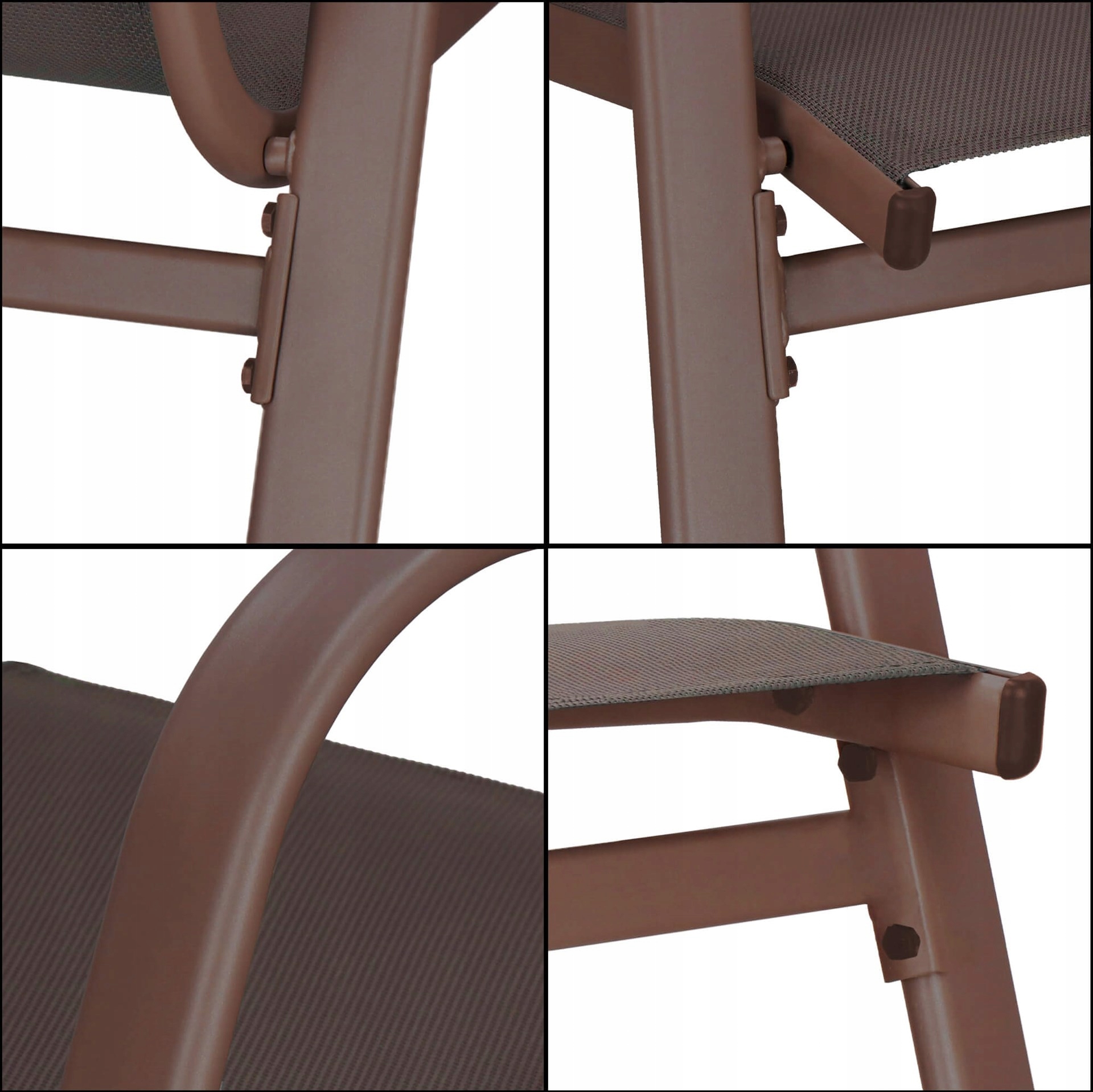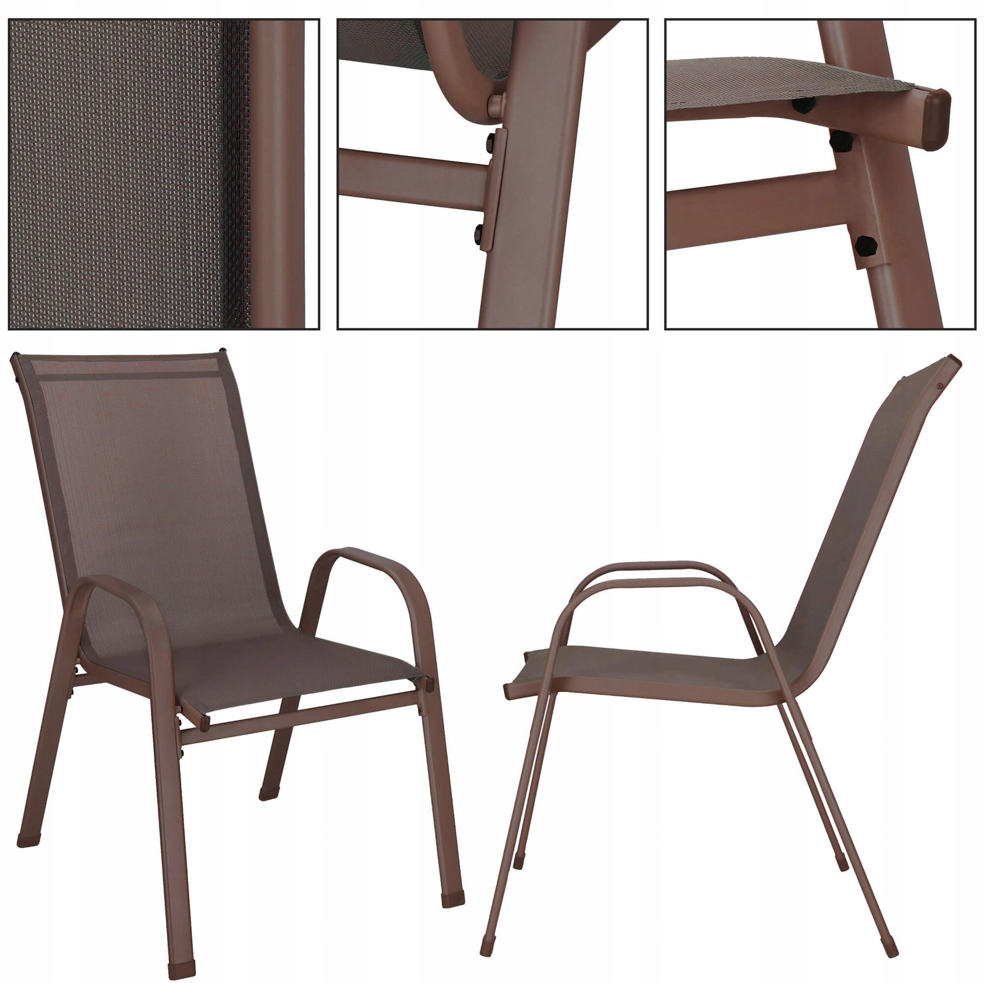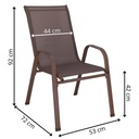 Siedzisko zostało wykonane z materiału textilene, który cechuje się przede wszystkim nie nagrzewaniem się oraz nie wchłanianiem wilgoci. Warto podkreślić, że to tworzywo jest nieszkodliwe dla środowiska, a zmienne warunki atmosferyczne nie powodują utraty właściwości czy koloru. Jego wysoka elastyczność gwarantuje komfortowy wypoczynek na świeżym powietrzu.