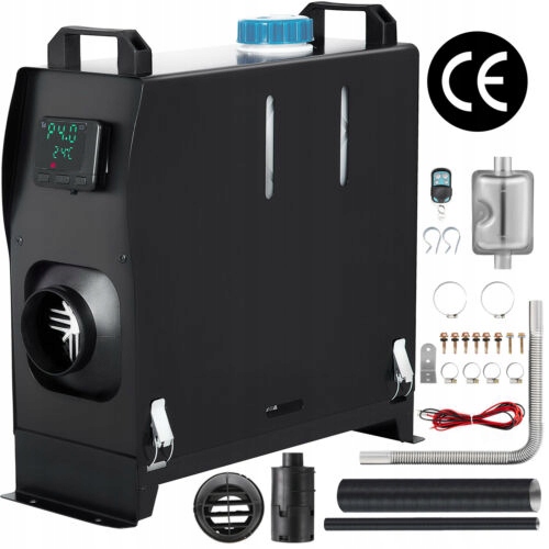Łatwa instalacja: Zbiornik paliwa, nagrzewnica i pompa paliwa nagrzewnicy postojowej na olej napędowy zostały zainstalowane jako całość, co sprawia, że instalacja jest bardzo wygodna. Z kompletnym wyposażeniem: 1 x nagrzewnica wysokoprężna all-in-one, 1 x pilot zdalnego sterowania, 1 x tłumik, 1 x belka główna, 1 x rura wlotowa i wydechowa, 1 x rura wydechowa, 1 x zestaw montażowy. Kompletny zestaw akcesoriów ułatwia montaż ogrzewania postojowego w pojeździe. Można go elastycznie zamontować w przedziale pasażerskim, bagażniku lub pod kontenerem.