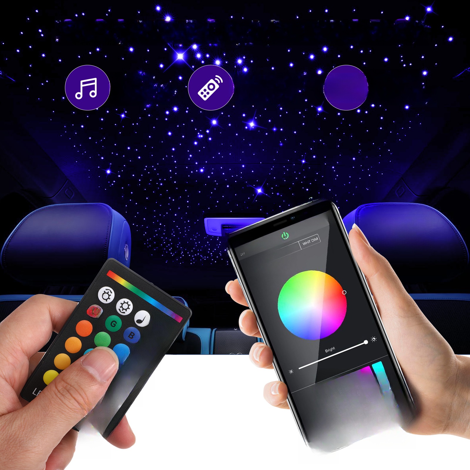 Może być sterowany głosem, takim jak włączanie muzyki. Lub zeskanuj kod na silniku i pobierz -sterowaną aplikację. Z łatwością stwórz romantyczną atmosferę dzięki temu zestawowi oświetlenia światłowodowego
