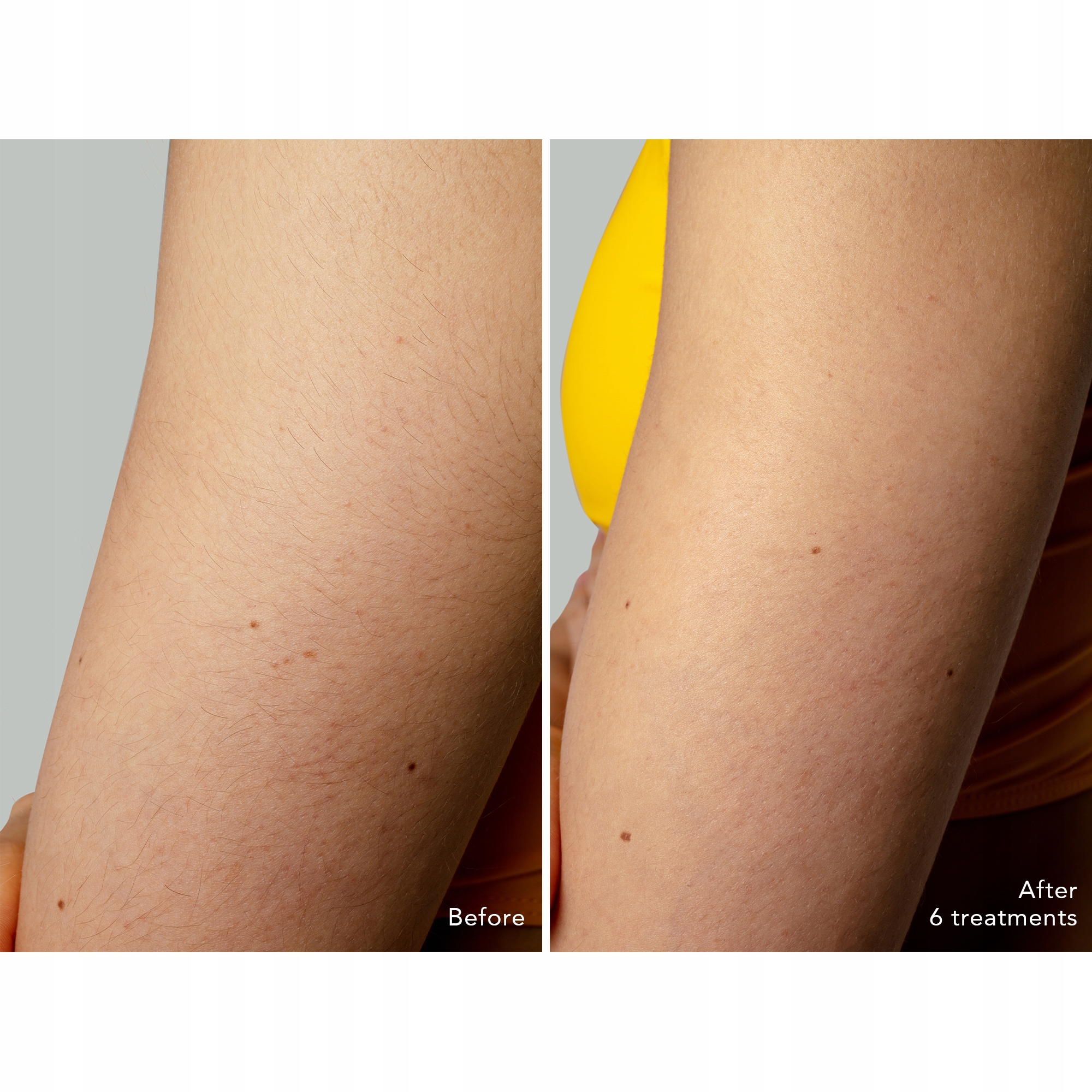 Długotrwała technologia usuwania włosów z całego ciała, a do tego komfort, wygoda i prywatność we własnym domu? Tak, dzięki PEACH 2, specjalistycznemu urządzeniu IPL (Intense Pulsed Light), które wykorzystuje silne impulsy świetlne, aby zakłócić cykl odrastania włosów i szybko zatrzymać rozwój mieszków włosowych, zapewniając widocznie gładką skórę. Osobom o ciemniejszej karnacji i nowym IPL zalecamy rozpoczęcie od najniższego poziomu natężenia światła i stopniowe zwiększanie go do poziomu optymalnego. Ciesz się znaczną redukcją włosów po około 12 tygodniach. Zasada jest prosta. Impulsy światła zmuszają korzeń włosa do przejścia w fazę spoczynku, co oznacza, że istniejące włosy wypadają, a z czasem rośnie mniej włosów w tym miejscu. Pigment melanina pochłania światło, a nagromadzona energia zamienia się w ciepło, które uszkadza mieszek włosowy, unieruchamiając lub niszcząc komórki produkujące nowe włosy - co skutkuje gładką, pozbawioną włosów skórą.