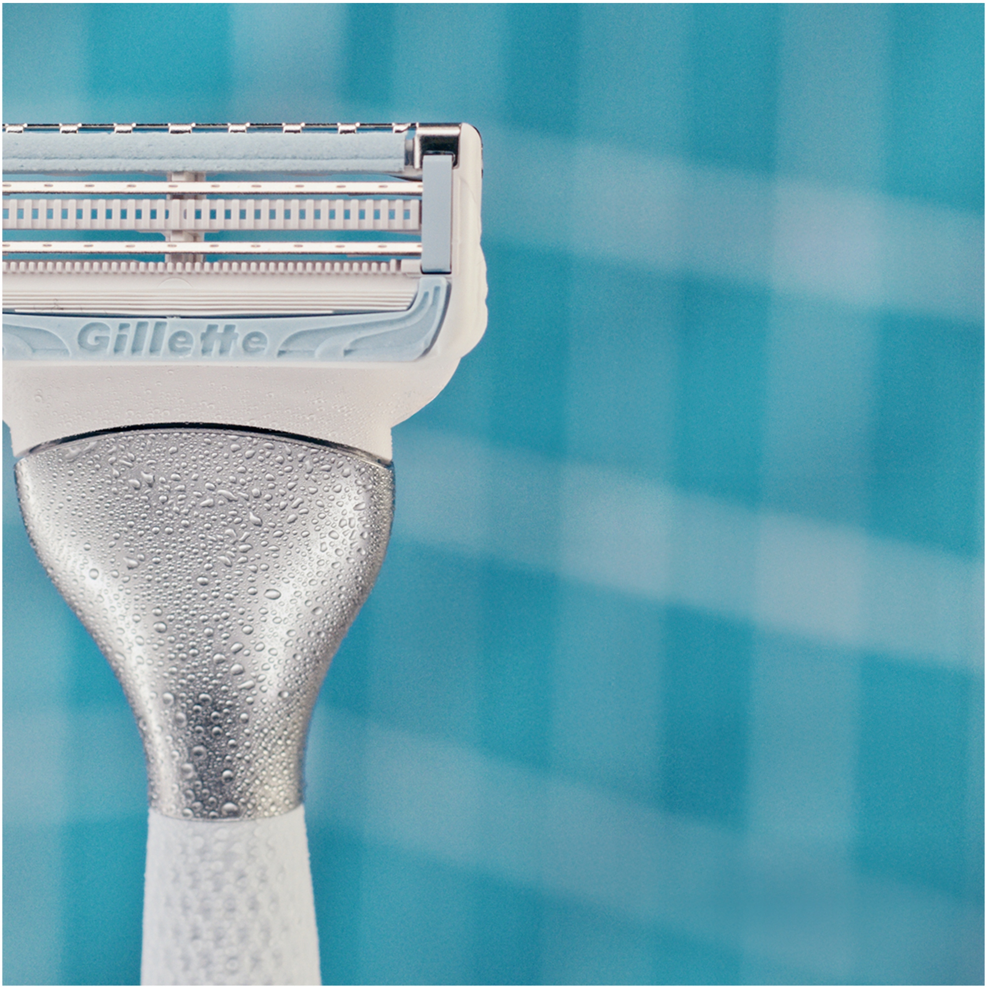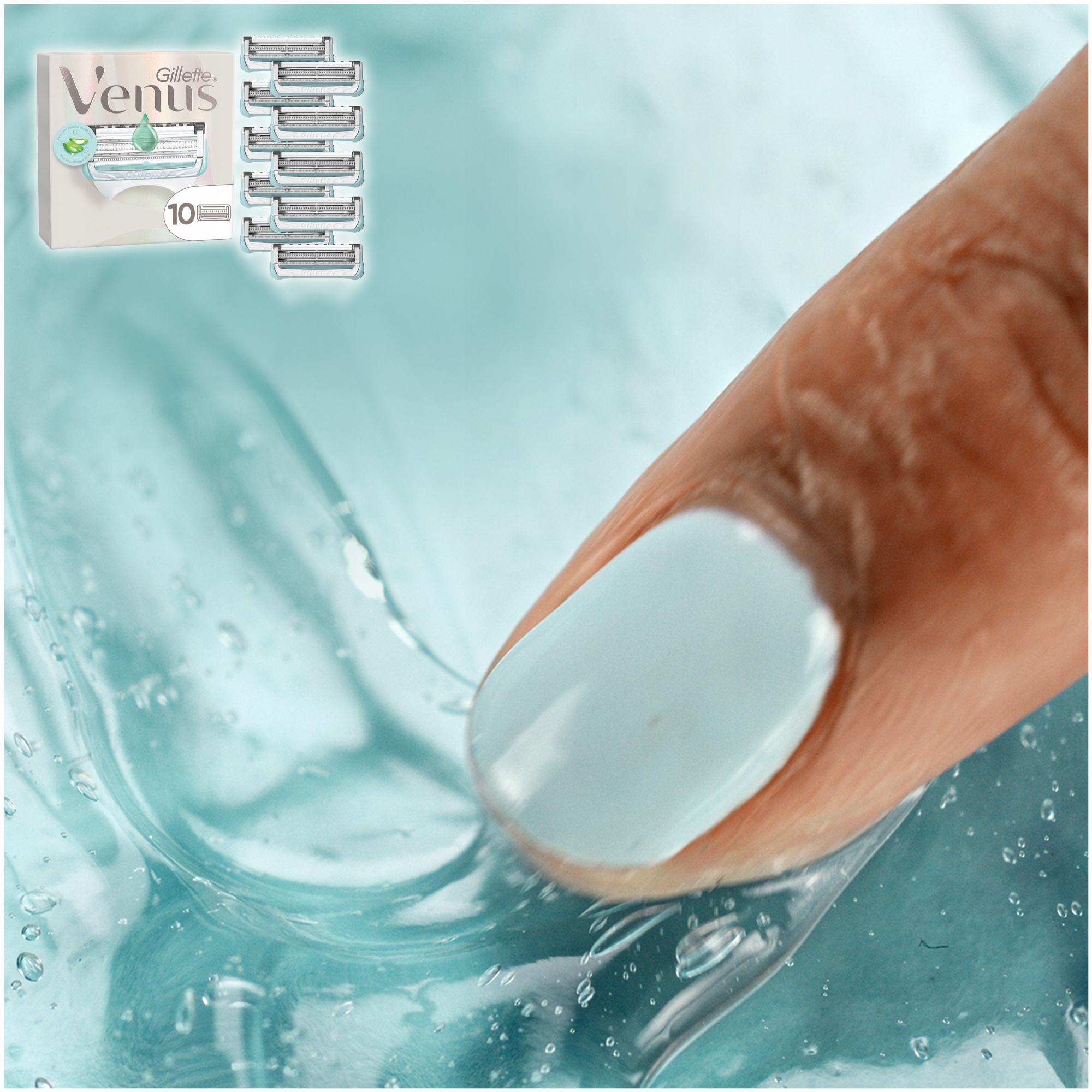 Maszynka Venus do włosów i skóry w okolicy bikini została specjalnie zaprojektowana tak, aby pomóc chronić skórę okolic bikini przed podrażnieniami po goleniu. Pasek chroniący przed podrażnieniami i optymalnie rozmieszczone ostrza umożliwiają przycinanie włosów prawie bez dotykania skóry. Maszynka i ostrza wymienne mają po drugiej stronie ostrzy precyzyjny trymer, aby ułatwić dotarcie do trudniej dostępnych obszarów. Ta maszynka do golenia z dodatkiem aloesu powstała z myślą o pielęgnacji najbardziej wrażliwych obszarów ciała.