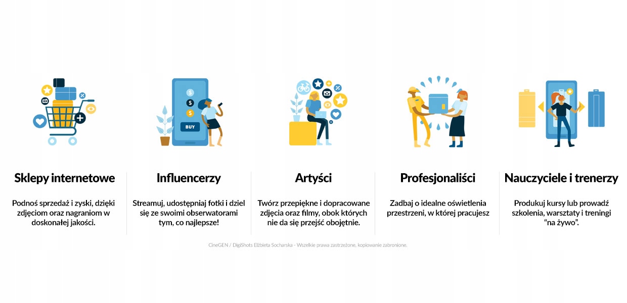Zwiększ swoją rozpoznawalność, zasięgi oraz zyski, dzięki poręcznemu statywowi, który znacząco poprawi jakość Twoich materiałów.Lekka i solidna konstrukcja oraz opcja wszechstronnej konfiguracji sprawią, że będziesz mieć go zawsze przy sobie i z łatwością dopasujesz do swoich oczekiwań.
