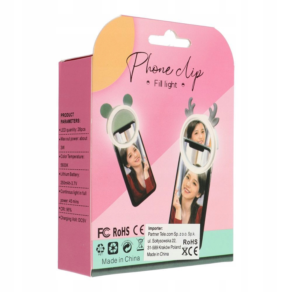 Lampa montowana jest bezpośrednio na telefonie, zapewniając równomierne i miękkie doświetlenie twarzy podczas robienia zdjęć, nagrywania wideo lub transmisji na żywo. Jej design z motywem zwierzęcych uszek sprawia, że produkt wyróżnia się na tle innych urządzeń i doskonale sprawdza się jako prezent.