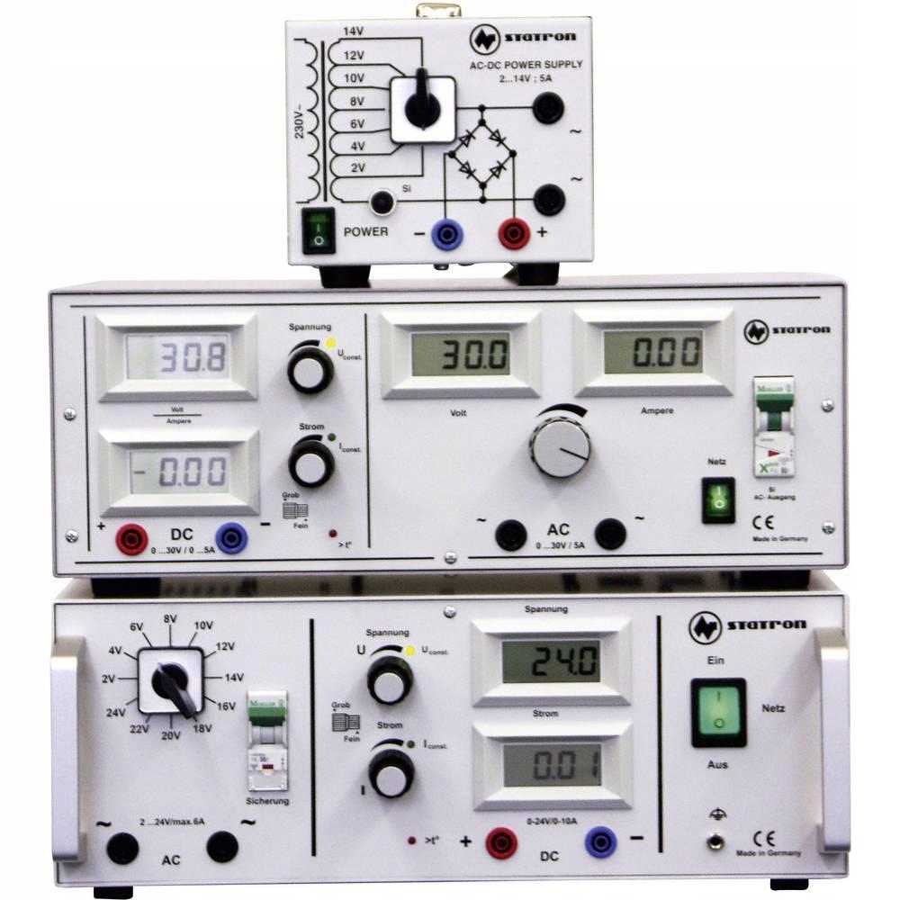 Uniwersalne zasilacze firmy Statron odznaczają się niewielkim rozmiarami, dobrymi parametrami i niską ceną, można je polecić szczególnie szkołom i jednostkom prowadzącym kształcenie zawodowe. Regulowane napięcie wyjściowe 2 - 24 V dostępne jest jako napięcie AC oraz jako napięcie DC (przez wbudowany prostownik mostkowy) w osobnych gniazdach. Bezpieczeństwo zgodnie z EN 61010.