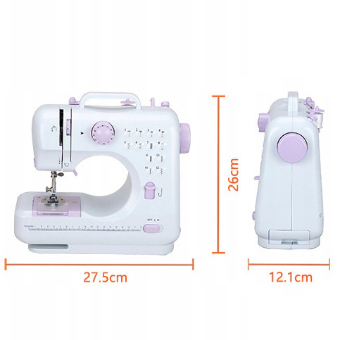 Maszyna do szycia jest wyposażona w 12 wbudowanych wzorów ściegów, które mogą być używane do szycia guzików, dziurek na guziki, zamków błyskawicznych, szwów itp., które mogą zaspokoić różne potrzeby szycia DIY.