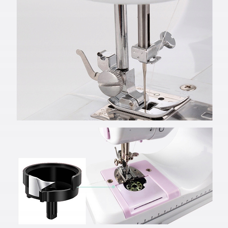 Za pomocą przełącznika przyciskowego i przełącznika pedału nożnego możesz wybierać według różnych okazji użytkowania. Funkcja szycia wstecznego: Koniec szwu można wzmocnić, aby zapewnić, że nie ma luźnych krawędzi, dzięki czemu szycie jest bardziej wytrzymałe. Żarówka ze światłem roboczym LED; maszyna do szycia z obcinaczem nici: oszczędza czas bez nożyczek; funkcja nawijania: wygodna do nawijania szpulki.