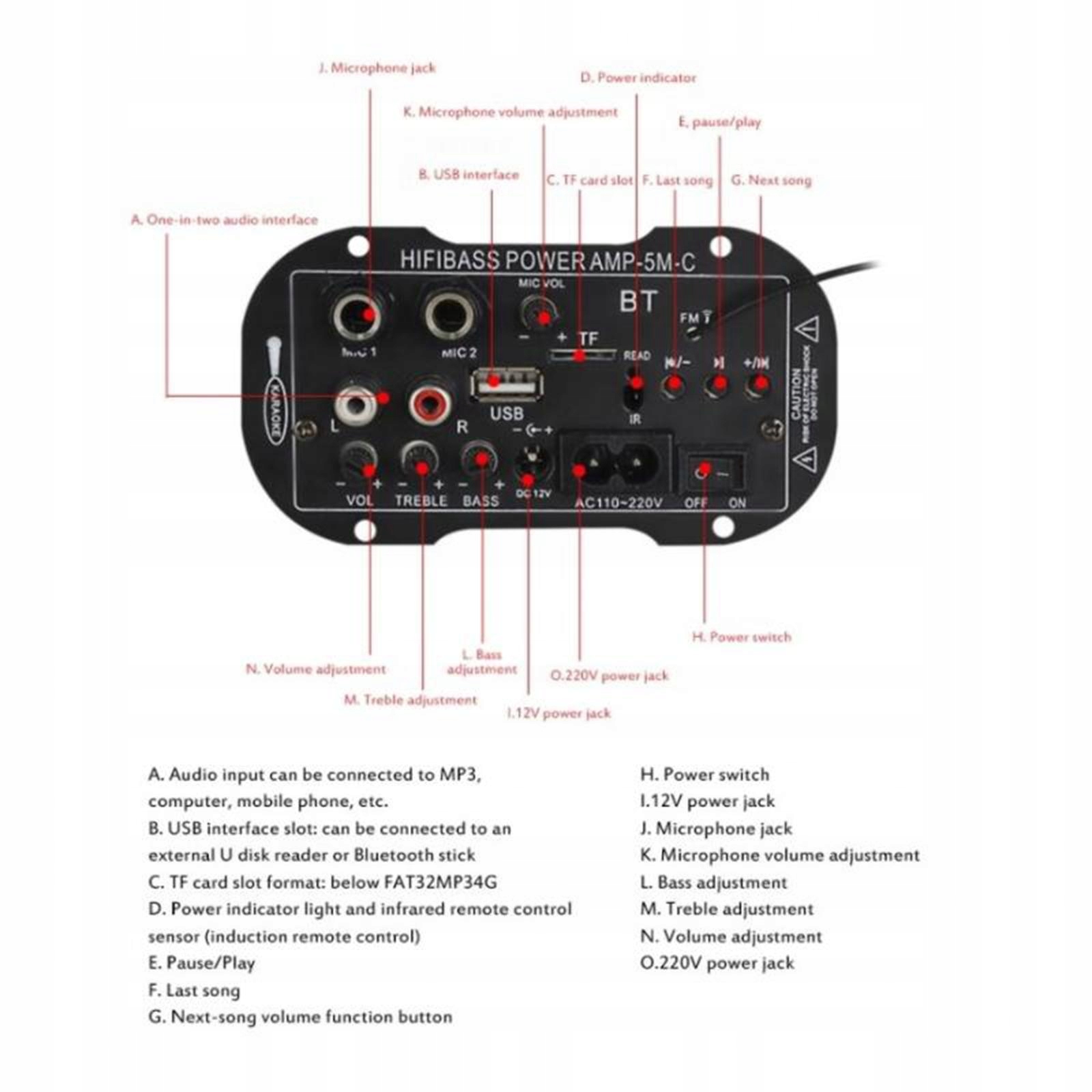 Подключаемая TF-карта, USB можно подключить к внешнему аудиовходу, с функцией радио, беспроводной функцией Bluetooth, можно подключить с проводным микрофоном