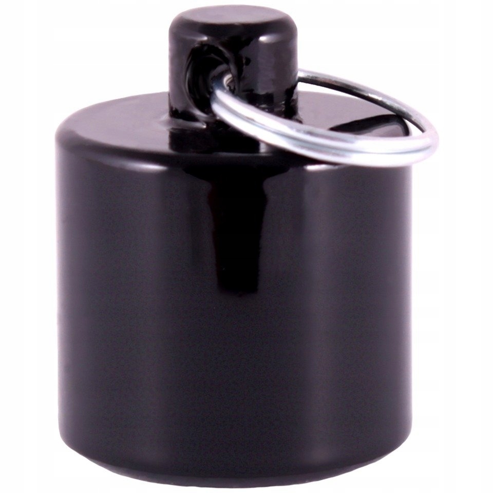 Metalowy ciężarek o wadze 100g wykonany ze stali, polakierowany na czarno z zainstalowanym metalowym kółkiem do zawieszania.
