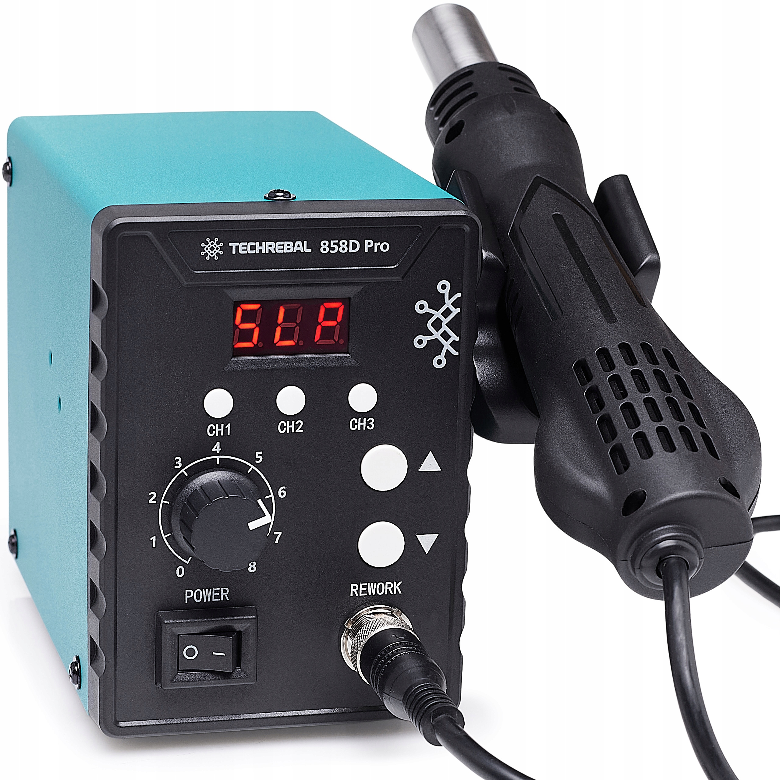 Stacja lutownicza Techrebal 858D Pro to must-have dla każdego entuzjasty i profesjonalisty w dziedzinie elektroniki. Z mocą 700W i precyzyjnym przepływem powietrza do 120 l/min, umożliwia efektywne lutowanie nawet najbardziej wymagających komponentów.