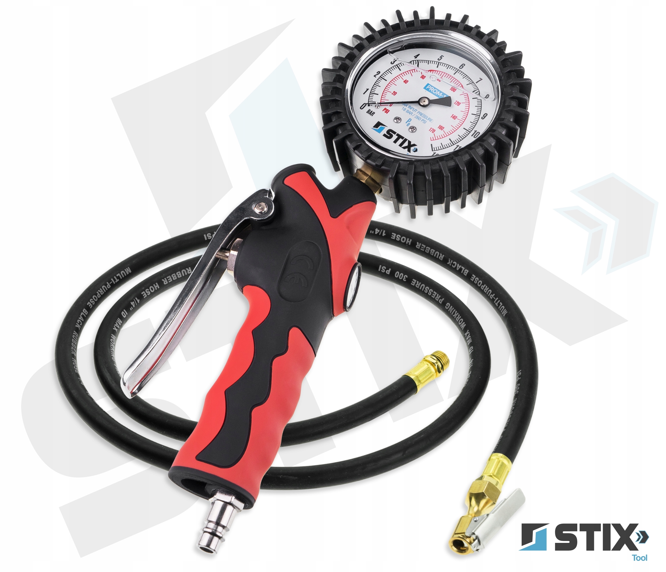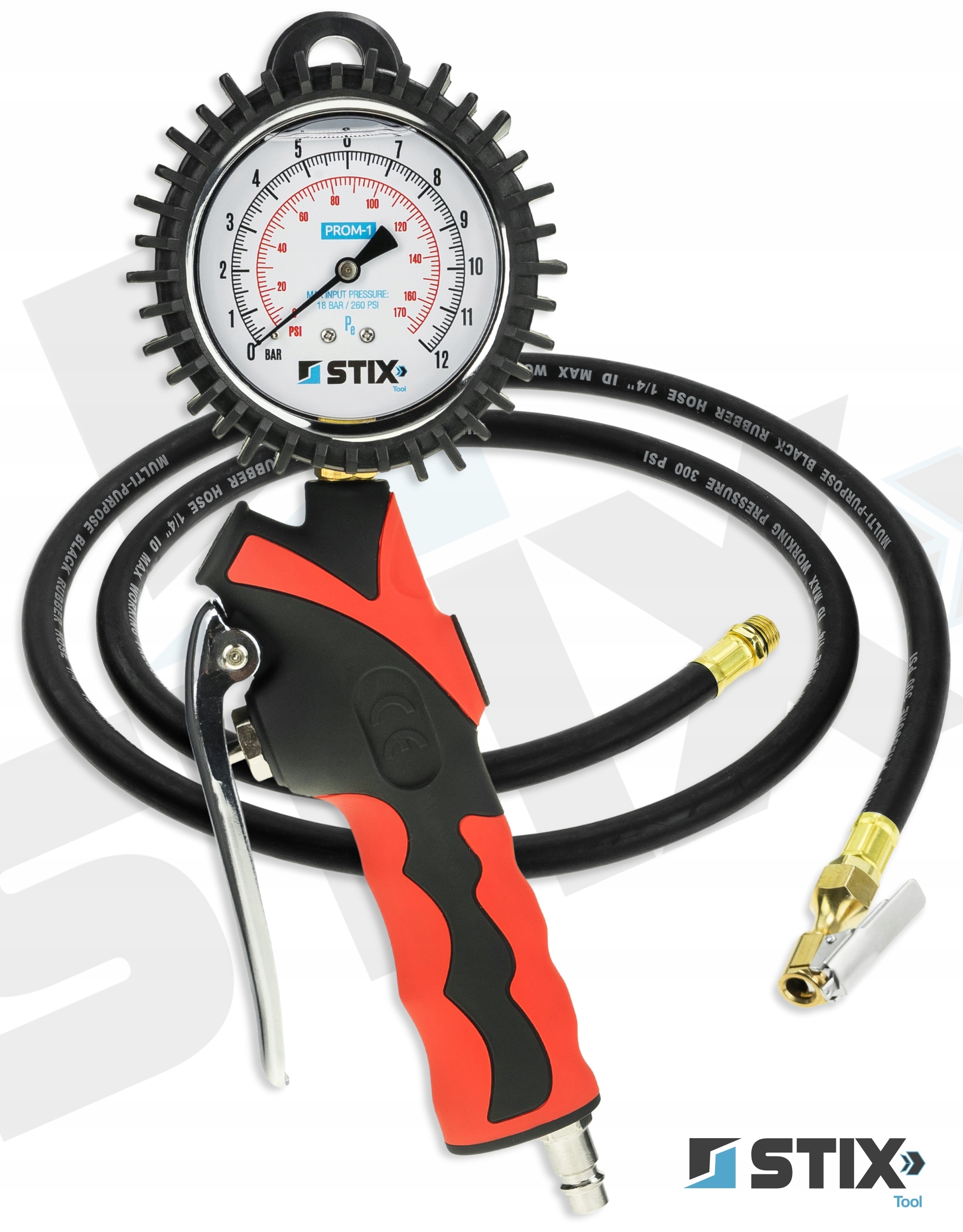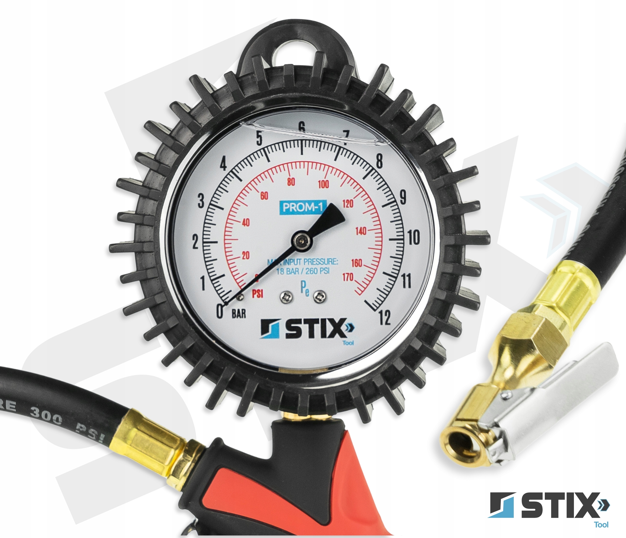 PROM-1 marki Stix Tool to klasyczny pistolet do pompowania kół, wyposażony w niezawodny manometr analogowy. Zapewnia szybką kontrolę ciśnienia, wysoką odporność na uszkodzenia oraz prostą obsługę bez potrzeby zasilania. Sprawdzi się w warsztacie, serwisie i garażu.