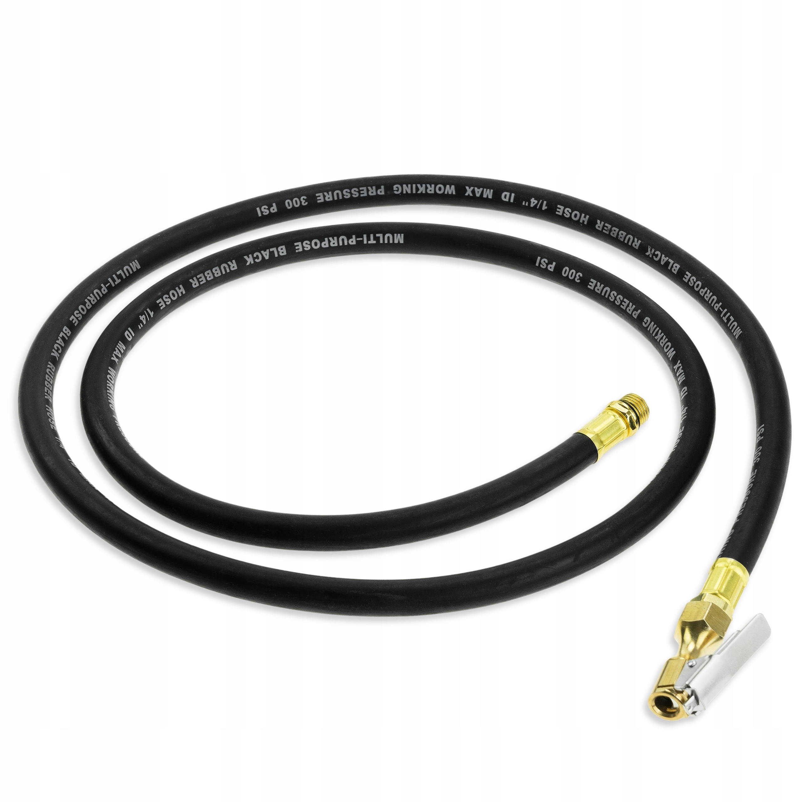 Obudowa manometru zabezpieczona gumową osłoną. Ergonomiczny uchwyt z tworzywa ABS z antypoślizgowym wykończeniem zapewnia wygodną pracę. Wąż o długości 150 cm zakończony jest mosiężną końcówką zaciskową, odporną na ciśnienie do 20 bar.