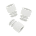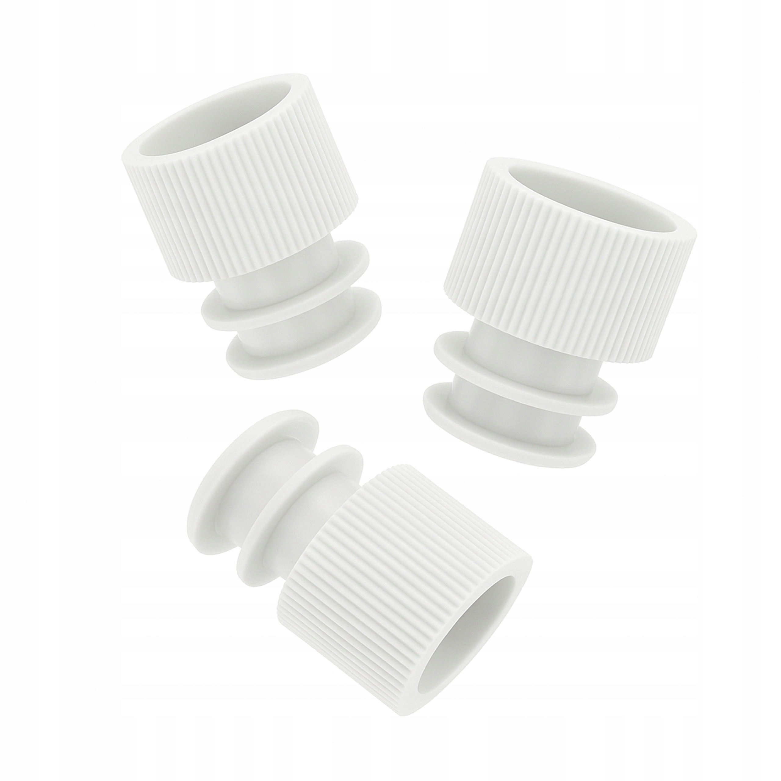 Białe korki laboratoryjne wykonane z elastycznego polietylenu (PE), zaprojektowane do zamykania probówek szklanych i plastikowych (w tym z polistyrenu – PS). Ich karbowana konstrukcja rozporowa pozwala na pewne i szczelne dopasowanie do wnętrza probówki bez ryzyka uszkodzenia krawędzi. Dzięki właściwościom tworzywa PE, korki charakteryzują się dobrą odpornością chemiczną oraz elastycznością, co czyni je praktycznym rozwiązaniem w codziennej pracy laboratoryjnej.