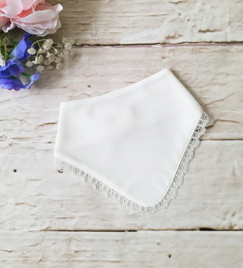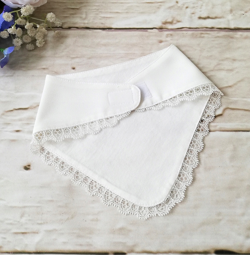 Śliniaczek w kolorze ecru wykończony delikatną koronką.