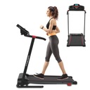 Konstrukcja bieżni jest składana, co znacząco ułatwia jej przechowywanie, szczególnie w mniejszych przestrzeniach. Duża kierownica zapewnia wygodny chwyt i stabilność podczas treningu, a funkcja pomiaru pulsu umożliwia kontrolowanie intensywności ćwiczeń i monitorowanie postępów. To urządzenie, które łączy funkcjonalność, wygodę i efektywność, idealne do codziennych treningów w domowym zaciszu, które pomoże Ci w utrzymaniu sylwetki i zdrowia w dobrej kondycji.