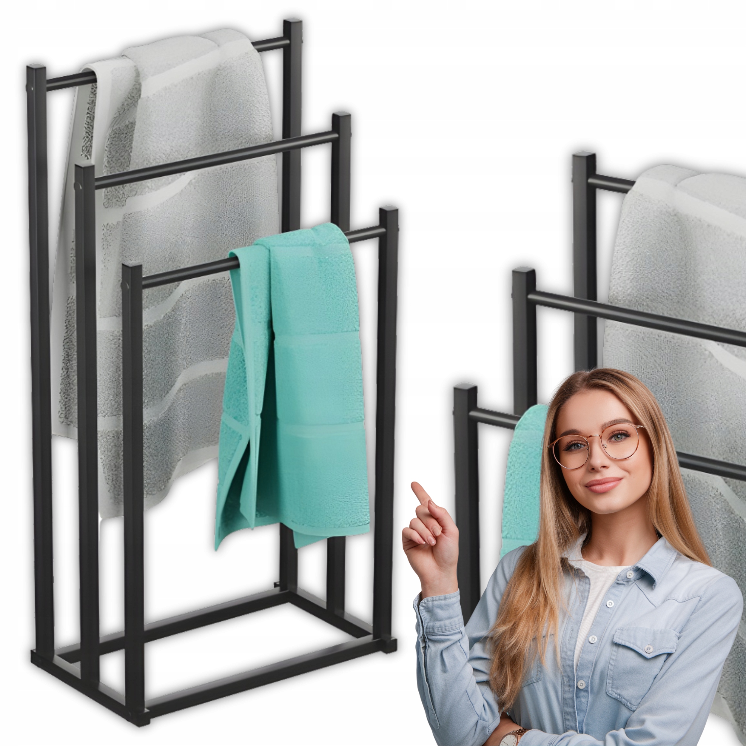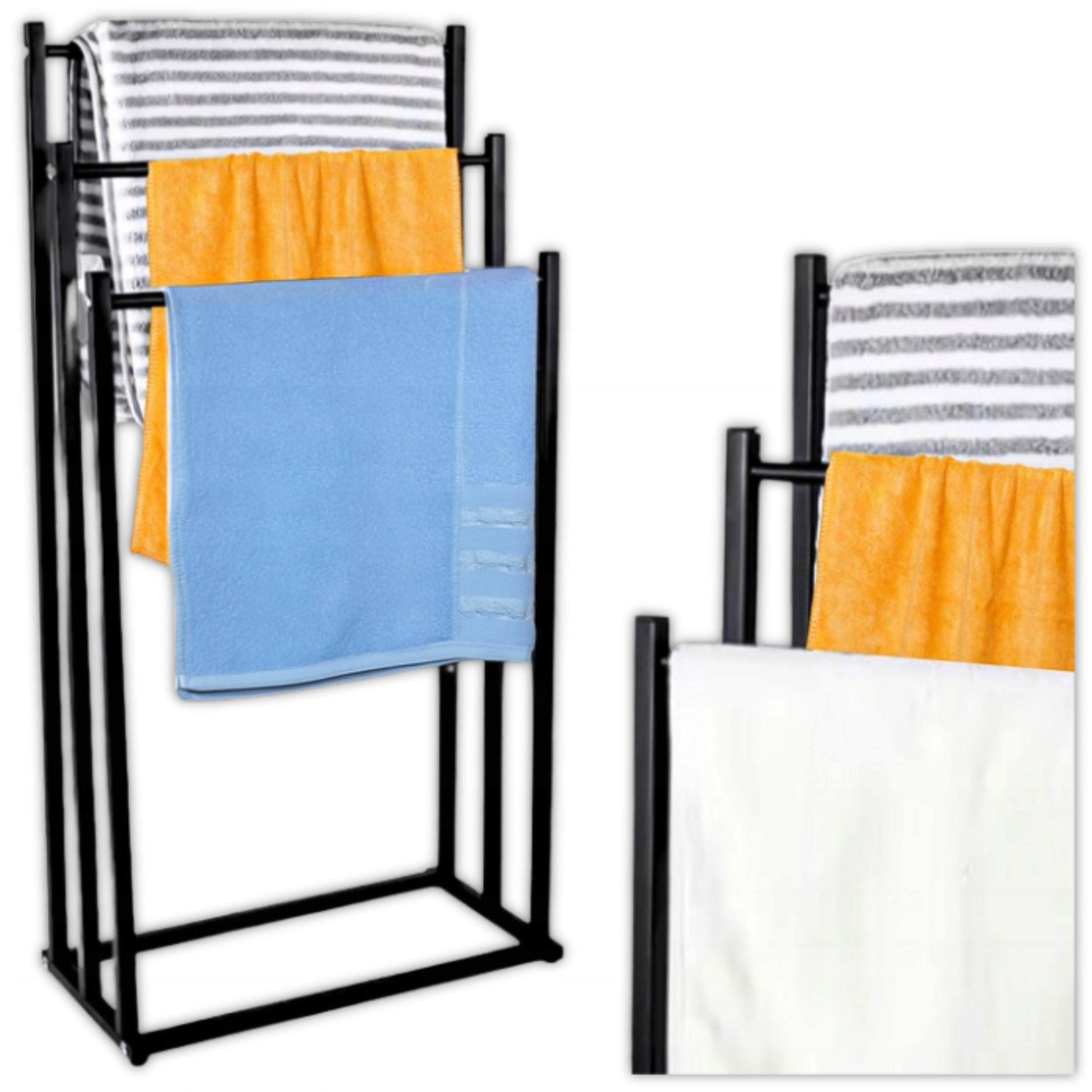 ✅ Postaw na wolnostojący wieszak z 3 poziomami, który rozwiązuje wszystkie te problemy: – więcej miejsca na ręczniki dla domowników i gości,