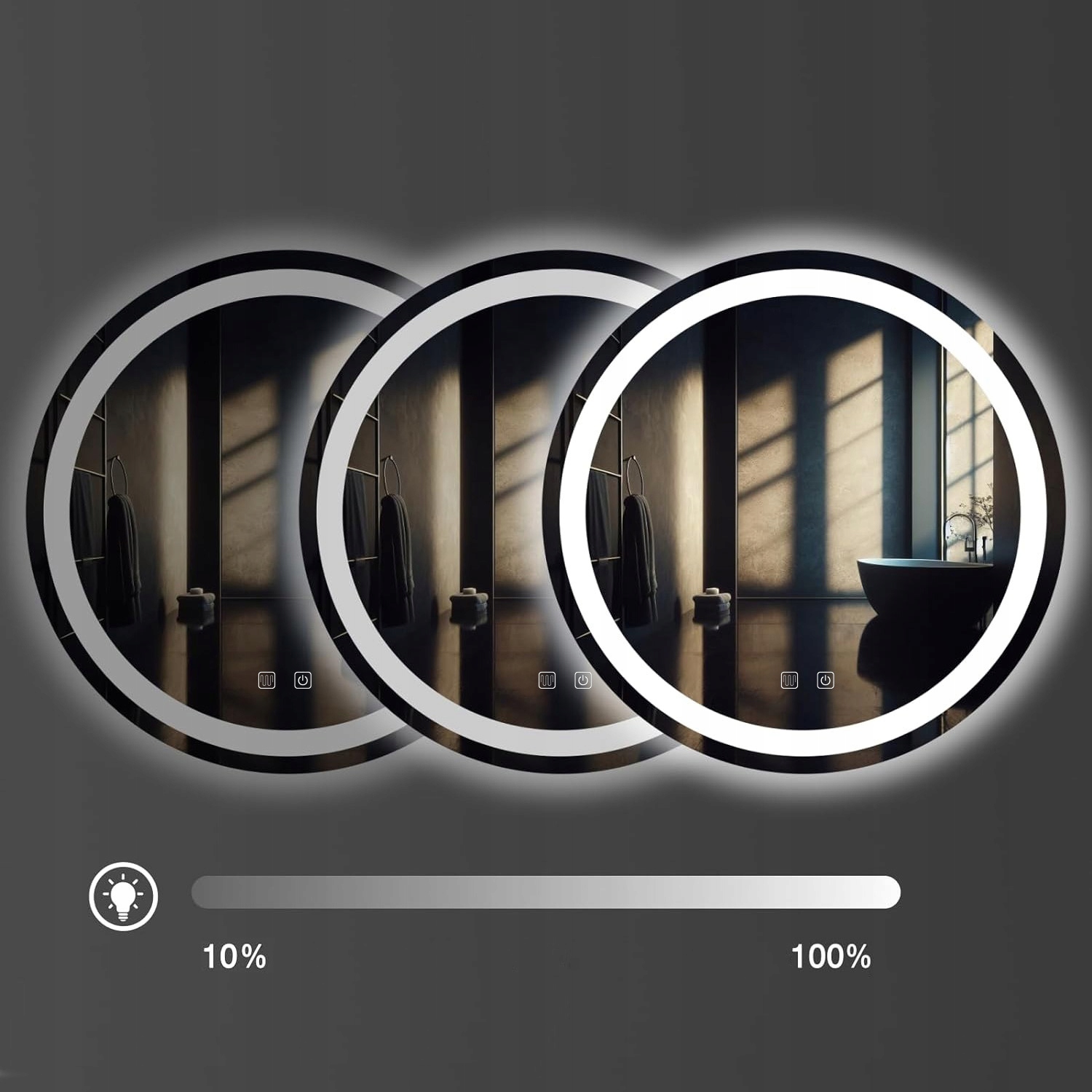 To lustro dostosowuje się do Ciebie! Dzięki funkcji regulacji intensywności światła możesz ustawić dokładnie taki poziom jasności, jaki Ci odpowiada – od delikatnego blasku wieczornego relaksu po mocne światło porannej aktywności.