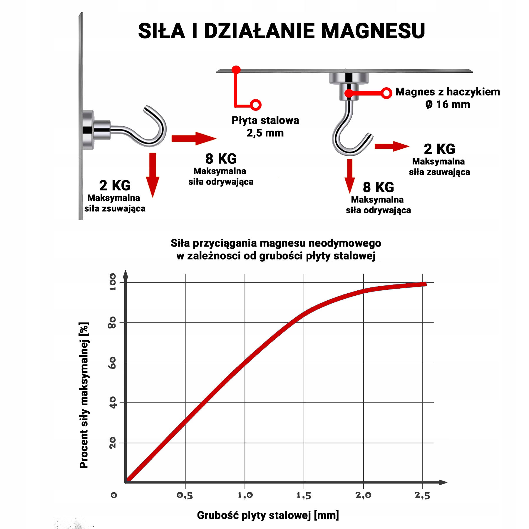 ✅ UDŹWIG: ~8 kg (na finalny udźwig wpływa wiele czynników, sugerujemy przetestować magnes w danych warunkach)