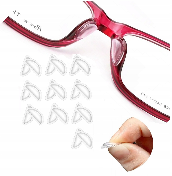 Zadbaj o komfort noszenia swoich okularów dzięki zestawowi silikonowych nosków samoprzylepnych! Ten praktyczny komplet zawiera 10 par wysokiej jakości, przezroczystych nakładek, które idealnie dopasowują się do każdego rodzaju oprawek.