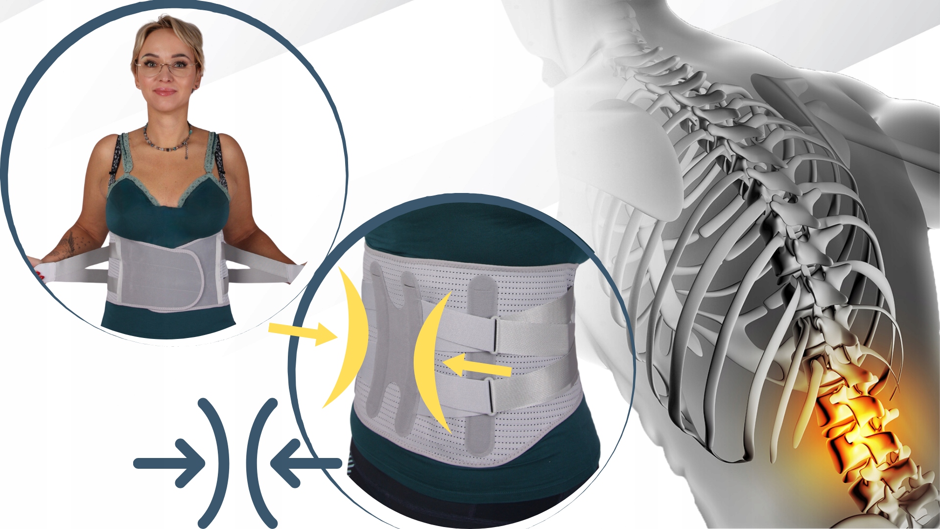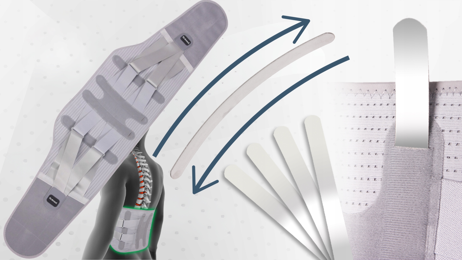 ✅Mocne rozciągliwe taśmy ortopedyczne, przebiegające poziomo, idealnie dopasowują się do sylwetki pacjenta. Stabilizację i wsparcie dla kręgosłupa w odcinku lędźwiowo-krzyżowy zapewnią dodatkowo elastyczne fiszbiny