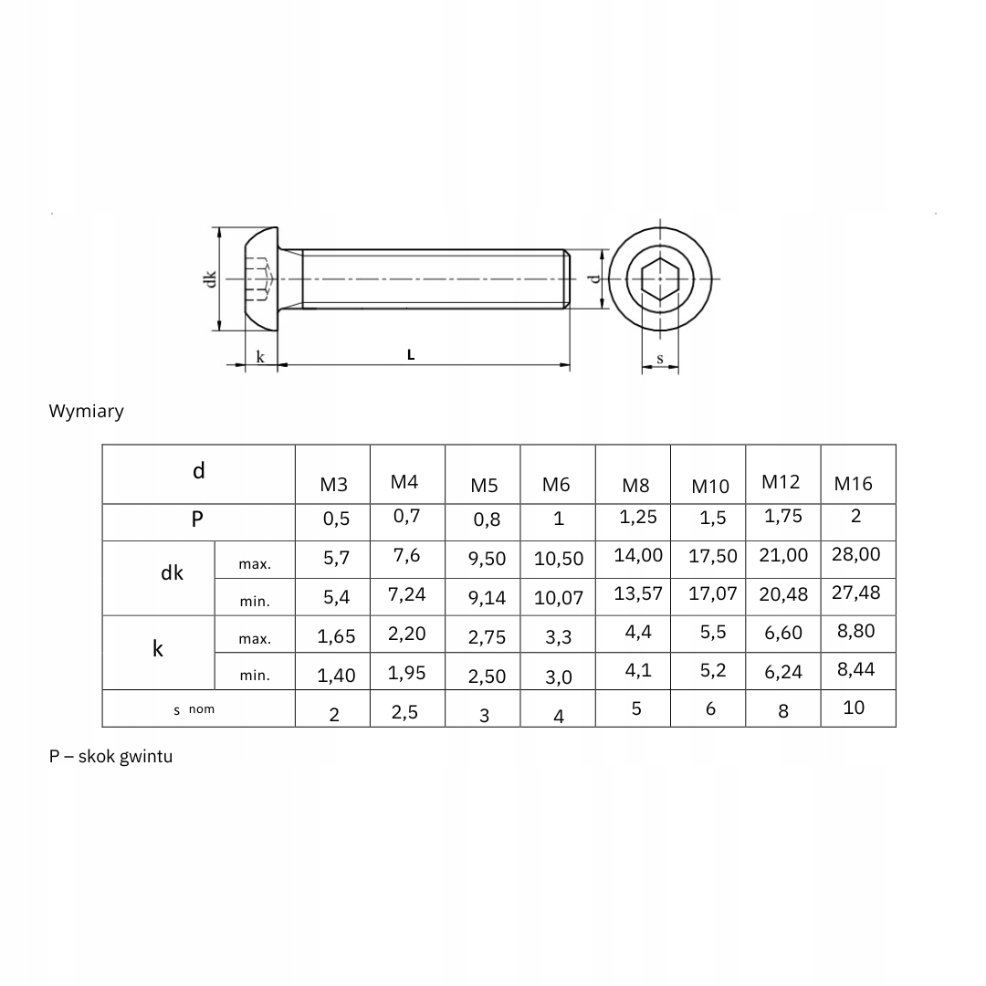 ŚRUBA IMBUSOWA Z ŁBEM KULISTYM GRZYBKOWA