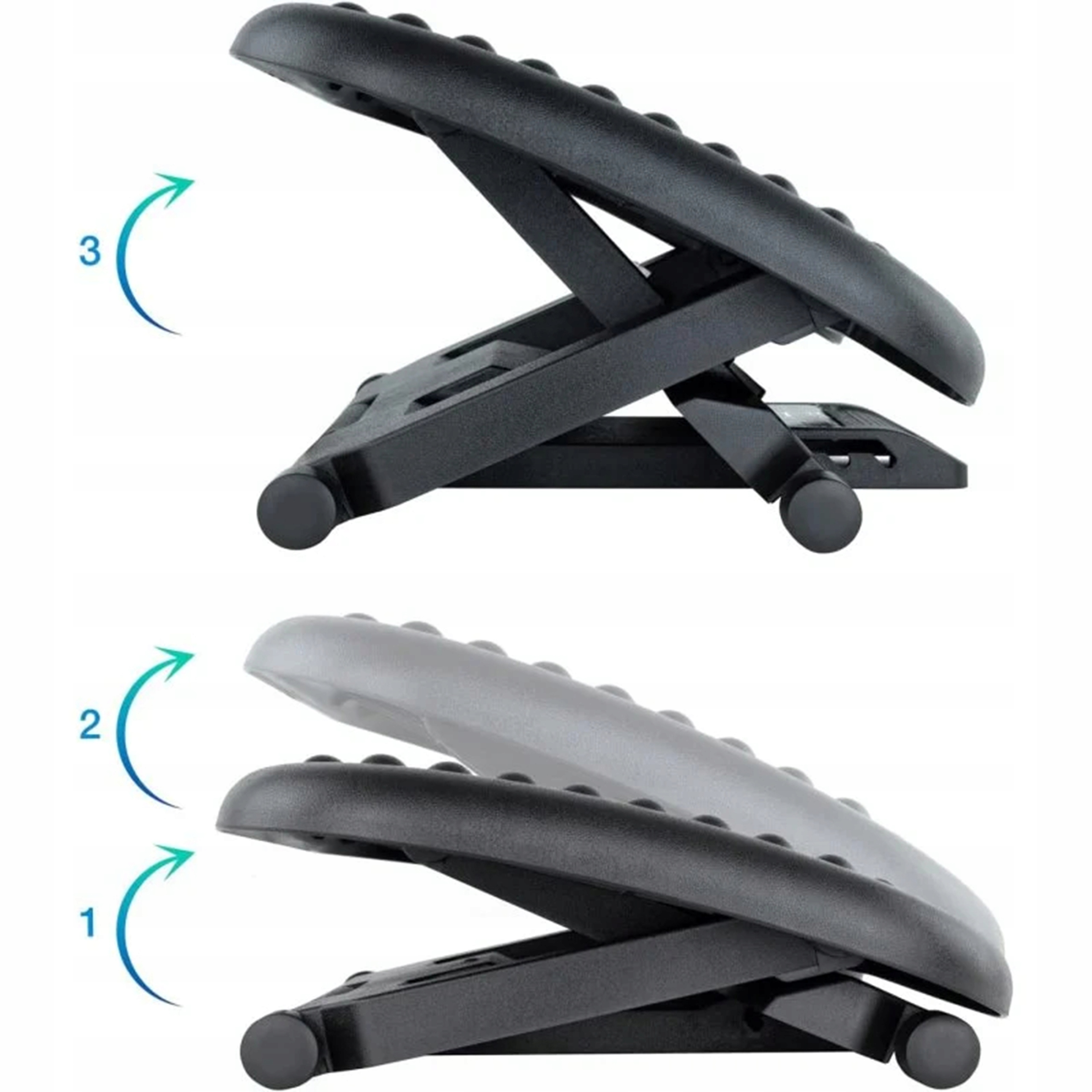 Ergonomiczny podnóżek biurowy, idealny dla osób spędzających długie godziny przy biurku. Zaprojektowany z myślą o komforcie i zdrowiu, wspiera prawidłową postawę, poprawia krążenie krwi i zapobiega dolegliwościom takim jak bóle kręgosłupa, opuchlizna nóg czy żylaki.