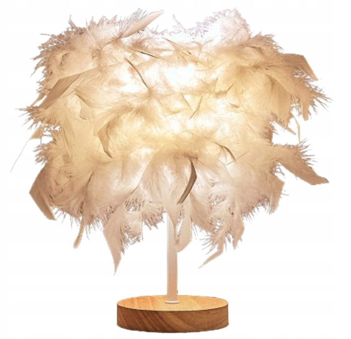 Dodaj odrobinę elegancji i fantazji do wystroju swojego domu dzięki tej wyjątkowej lampie. Wykonany z litego drewna i ozdobiony delikatnymi piórami, tworzy piękny, miękki blask w każdym pomieszczeniu.