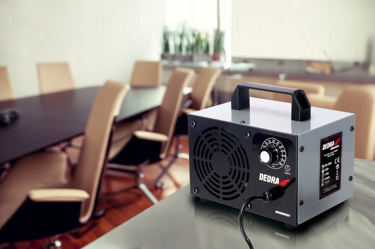 Generator ozonu DEDRA DED6631 ma dużą wydajność ozonu - 60 g/h, która pozwala szybko oczyścić powietrze w różnej wielkości pomieszczeniach, w samochodach, piwnicach, biurach, warsztatach oraz w wielu innych miejscach.