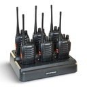 Kompletny zestaw składający się z 6 sztuk radiotelefonów Baofeng BF-88E oraz ładowarki wielostanowiskowej, przeznaczony do intensywnego użytku w środowiskach wymagających niezawodnej i bezprzewodowej komunikacji. Idealny wybór dla ochrony, ekipy eventowej, magazynów i działań terenowych.