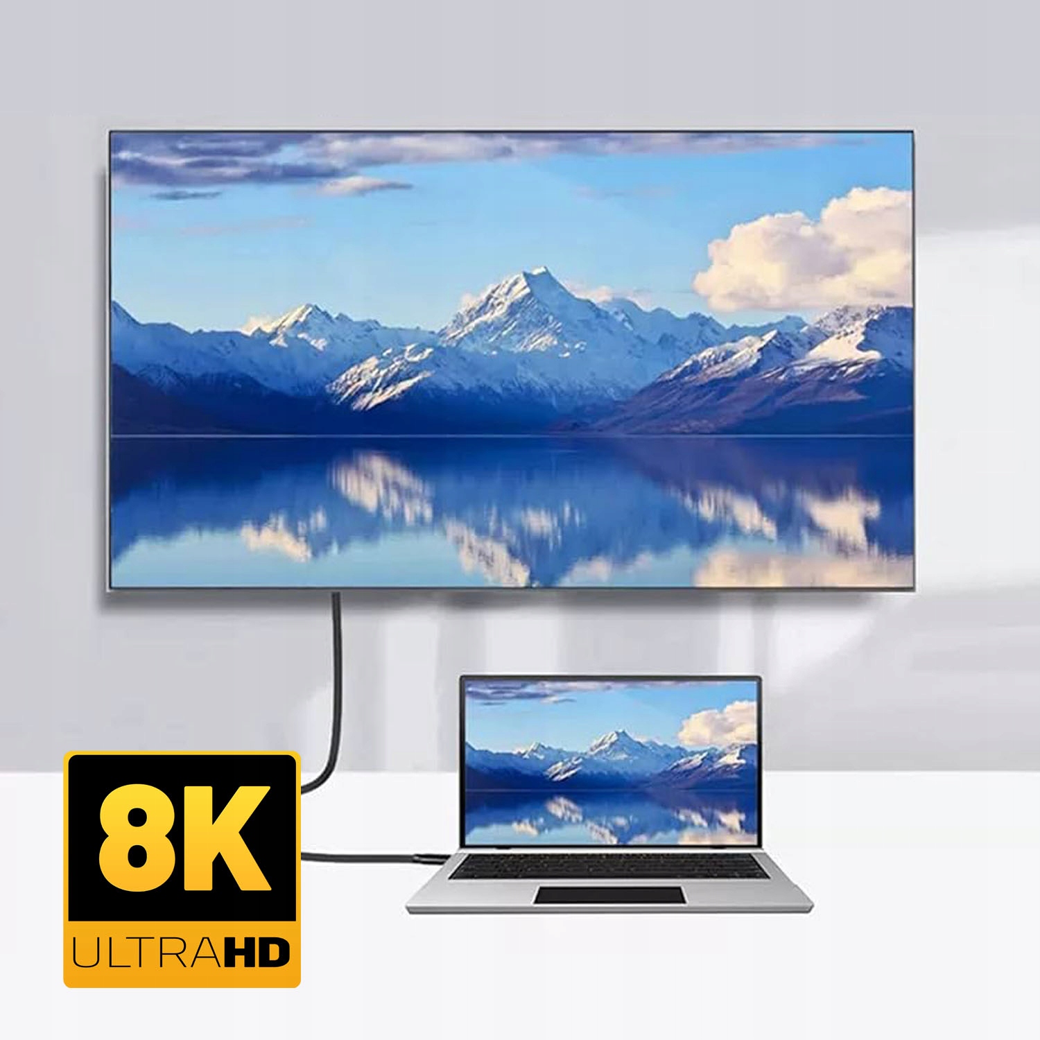Możesz podłączyć swój komputer do telewizora lub monitora i cieszyć się wyrazistym obrazem w rozdzielczości 4K lub 8K. Przewód umożliwia również szeregowe podłączenie monitorów, niwelując potrzebę używania dodatkowych kabli podczas rozszerzenia swojego stanowiska pracy.