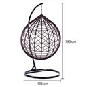 Duży, czarny fotel wiszący wykonany z wysokiej jakości technorattanu (imitacji naturalnej wikliny) zapewni Państwu doskonały komfort i relaks w domu, na tarasie lub w ogrodzie. Fotel posiada solidne metalowe siedzisko, oplecione wikliną, co zwiększa jego wytrzymałość, stabilizację oraz nadaje ciekawego designu. Model fotela VELACO w formie tzw. kokonu jest wyjątkowy ze względu na nowoczesny i elegancki wygląd, okrągłą, stabilną podstawę oraz stelaż stalowy malowany proszkowo. Tworzywo sztuczne, z którego wykonano fotel, jest odporne na warunki atmosferyczne. Duża, okrągła podstawa zapewnia maksymalną stabilność, a waga całego kompletu wynosi około 40 kg.