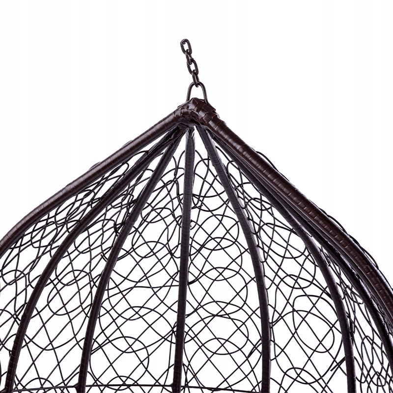 Przestronny, brązowy fotel wiszący KORFU, stworzony z technorattanu (imitacji naturalnej wikliny) gwarantuje niezrównany komfort i miejsce do relaksu, niezależnie czy będzie umieszczony w domu, na tarasie czy w ogrodzie. Jego trwałość i stabilność są wynikiem użycia solidnego, metalowego siedziska, które dodatkowo zostało oplecione wikliną, co nie tylko wzmacnia konstrukcję, ale także wzbogaca go o interesujący design. Model KORFU został zaprojektowany w formie kokonu, wyróżnia się nowoczesnym i eleganckim wyglądem. Materiał, z którego zrobiony jest fotel, charakteryzuje się odpornością na działanie warunków atmosferycznych, co sprawia, że fotel ten jest wyjątkowo praktyczny.