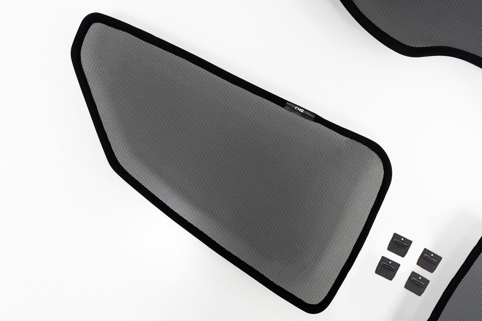 Magnetyczne zasłonki przeciwsłoneczne wraz z elementami montażowymi, dedykowane do modelu TOYOTA C-HR (AX10) 2016-2023.