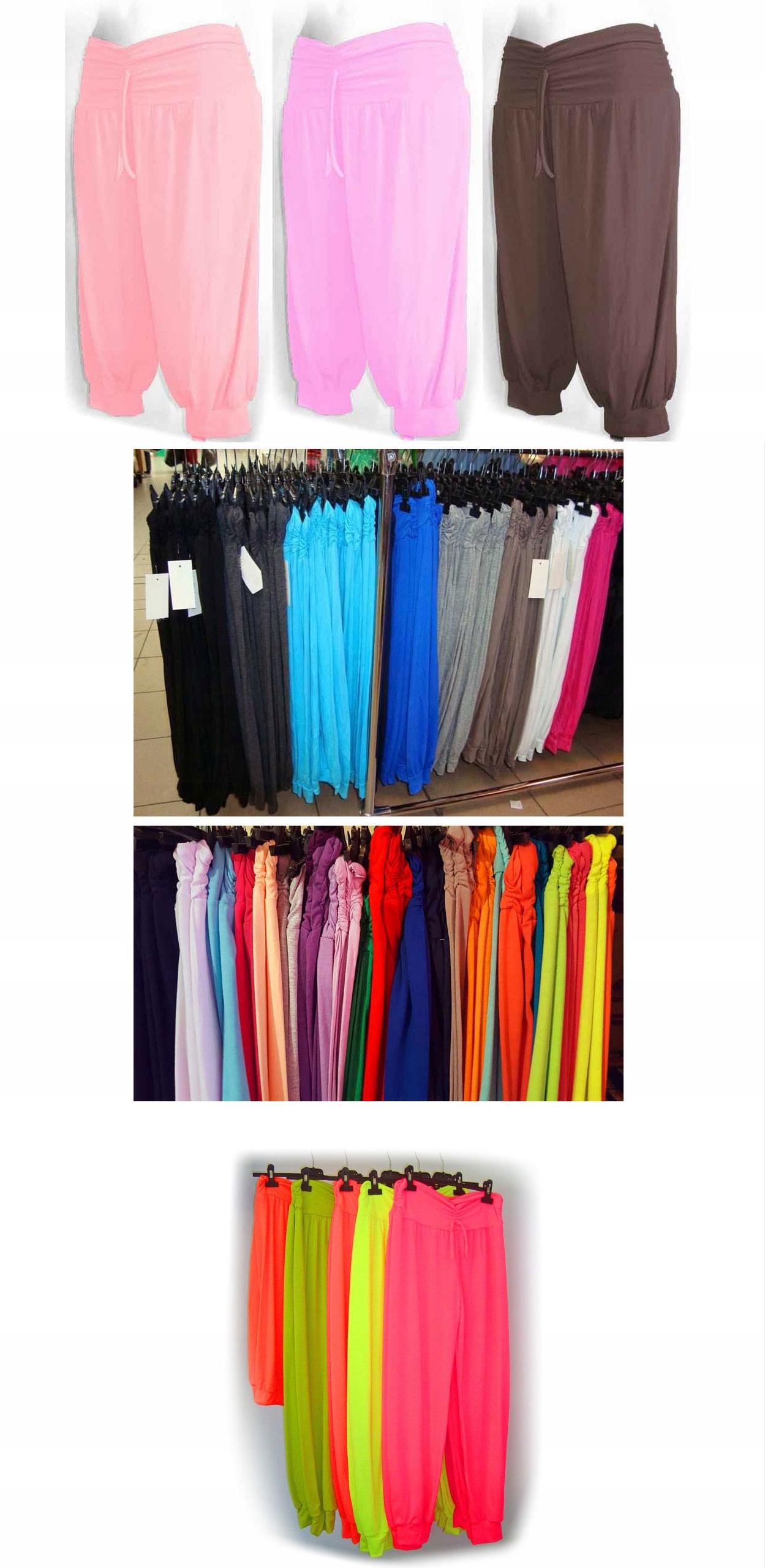 Na innych naszych aukcjach znajdziesz również w wielu kolorach alladynki rybaczki oraz alladynki długie, a także spodnie haremki, cygaretki, chinosy w tym również modele z kieszeniami lub bez.