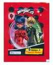 Zestaw 10 nieodpakowanych saszetek z kolekcji Miraculous Biedronka i Czarny Kot 1/2025, łącznie po otwarciu otrzymuje się 60 naklejek.