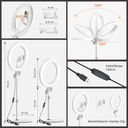 【Zasilane przez USB & zawartość opakowania ring light z statywem】Ten pierścień świetlny jest zasilany przez USB i ma 2-metrowy kabel, który zapewnia stabilne, migotanie wolne oświetlenie i wszechstronne możliwości ustawienia. Może być podłączony do powerbanku, komputera lub adaptera ściennego, bardzo praktyczne. Zawartość opakowania: 1 ring light, 1 podstawa z stopu, 1 teleskopowa rurka, 1 uchwyt na telefon, instrukcja obsługi
