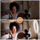 【CRI > 95, miękkie, nieoślepiające oświetlenie】To biurkowe ring light LED oferuje nie tylko profesjonalne oświetlenie z CRI > 95 dla wiernych kolorów, ale także miękkie, nieoślepiające oświetlenie, które jest łagodne dla oczu. Projekt zapewnia długotrwały komfort przy dłuższym użytkowaniu i zapobiega zmęczeniu oczu oraz zmęczeniu wzrokowemu, nawet podczas wielogodzinnych wideokonferencji, transmisji na żywo, vlogowania czy tworzenia treści