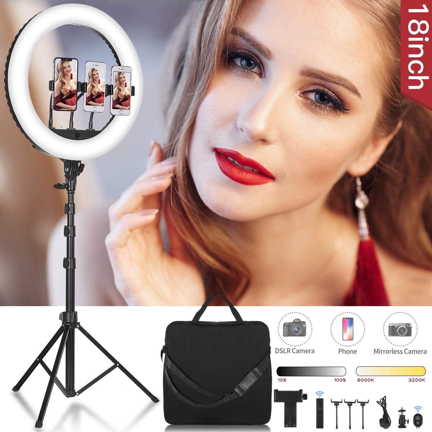 CXYP 18 cali LED Ringlicht z statywem, ściemniane światło do selfie z pilotem do nagrywania filmów na YouTube TikTok, selfie, transmisji na żywo, makijażu/fotografii kompatybilne z telefonem komórkowym