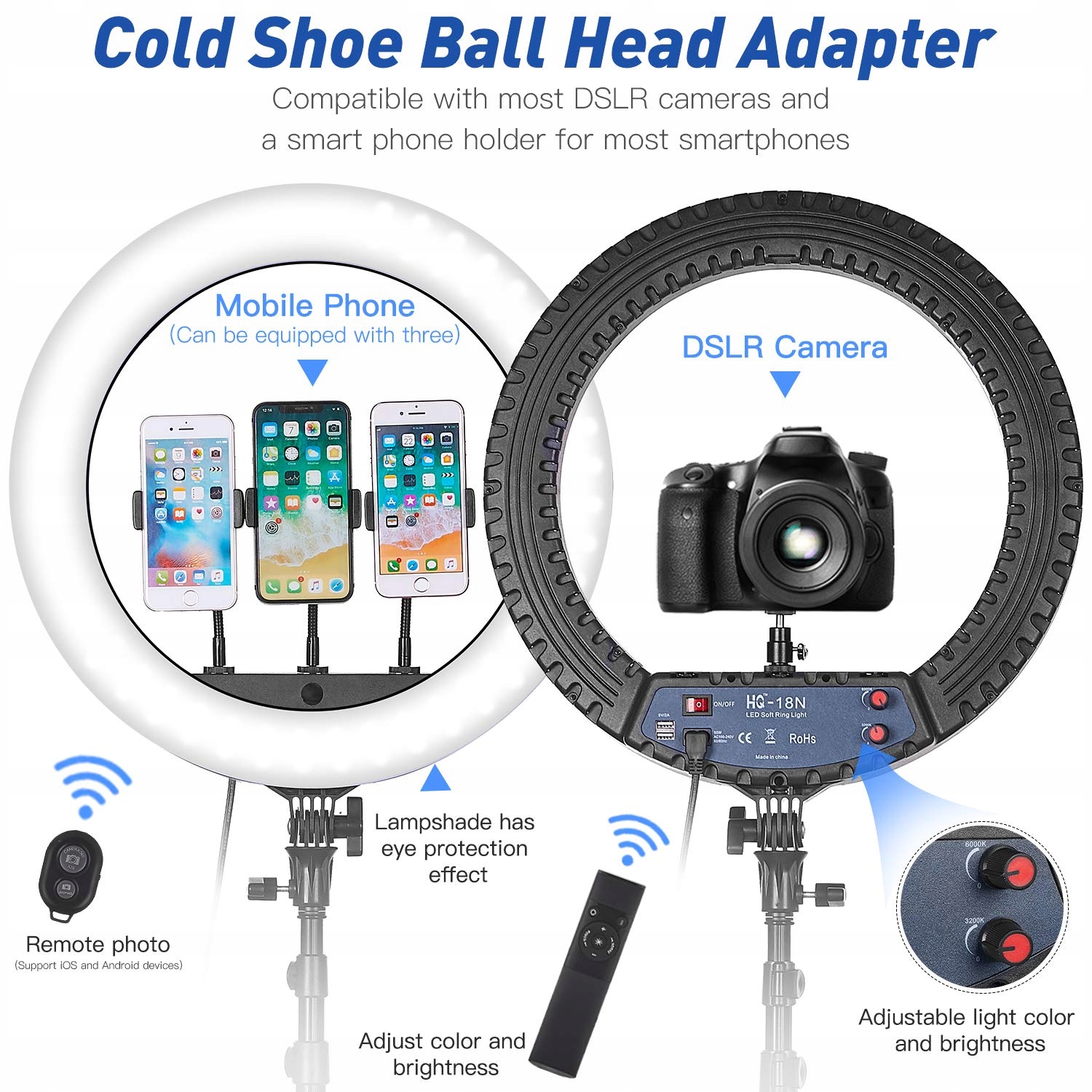 【Doskonała kompatybilność】 Produkt ten jest wyposażony w trzy uchwyty na telefon, które mogą jednocześnie obsługiwać trzy telefony. Jest kompatybilny z większością smartfonów o szerokości 55-58 mm. Oprócz telefonów komórkowych nadaje się również do aparatów. DLSR lub nawet lusterka do makijażu. Idealny do makijażu, zdjęć makro, filmów na YouTube, oświetlenia studyjnego, fotografii portretowej i transmisji itp.
