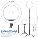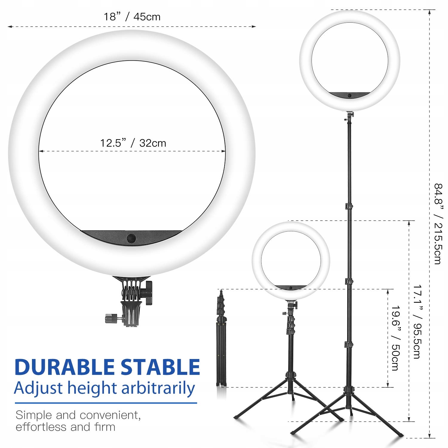 【Składany statyw i uniwersalny rozmiar śruby】 Statyw z regulacją pierścienia wykonany jest z wysokiej jakości stopu aluminium i może regulować wysokość od 50 cm do 170 cm. Dzięki elastycznemu rurze lampy lampa może obracać się swobodnie o 360 °, a lampa pierścieniowa może obracać się o 360 °, co pozwala dostosować ją do Twoich potrzeb na każdej wysokości i pod każdym kątem. Łatwy do przenoszenia, silna zdolność blokowania może być utrzymana.
